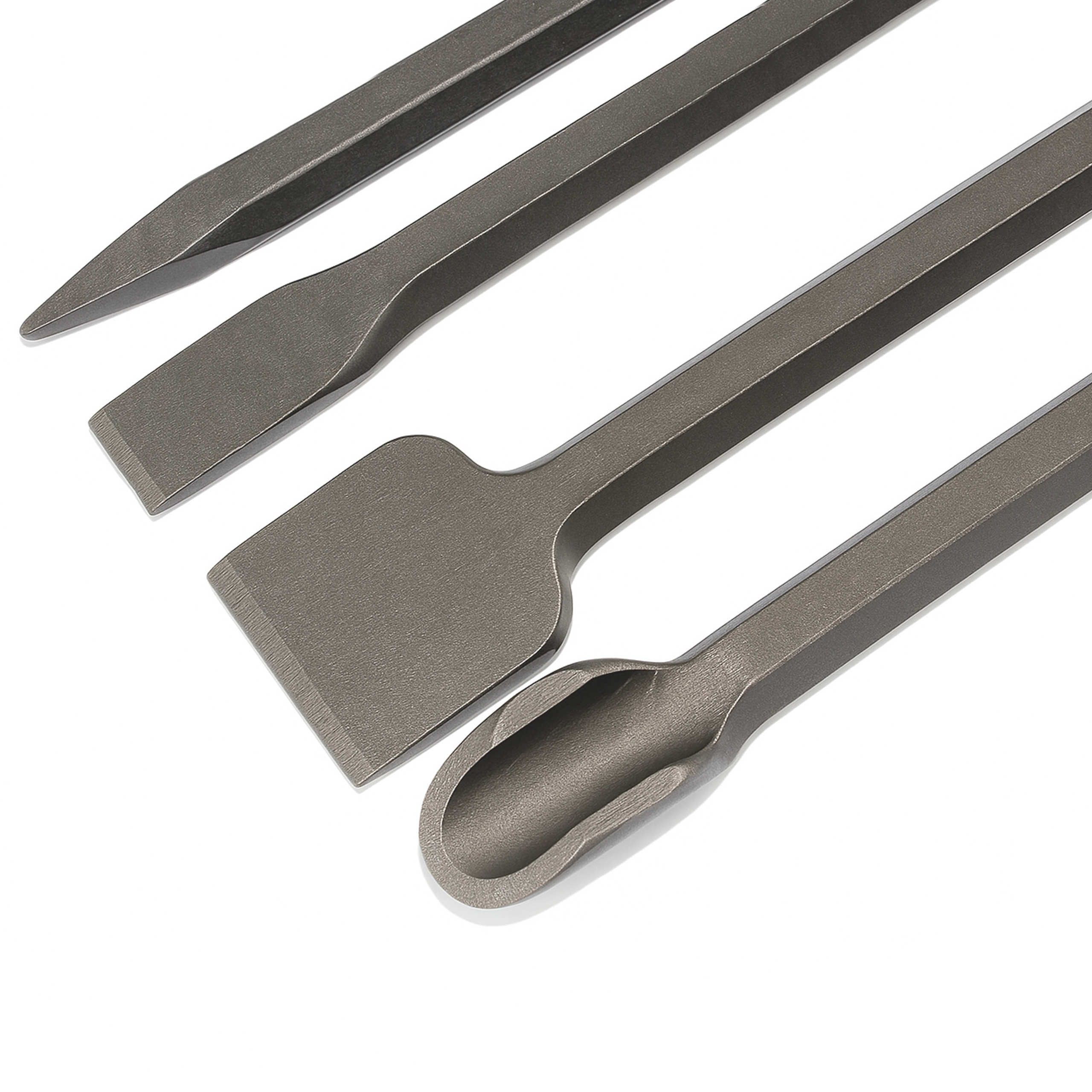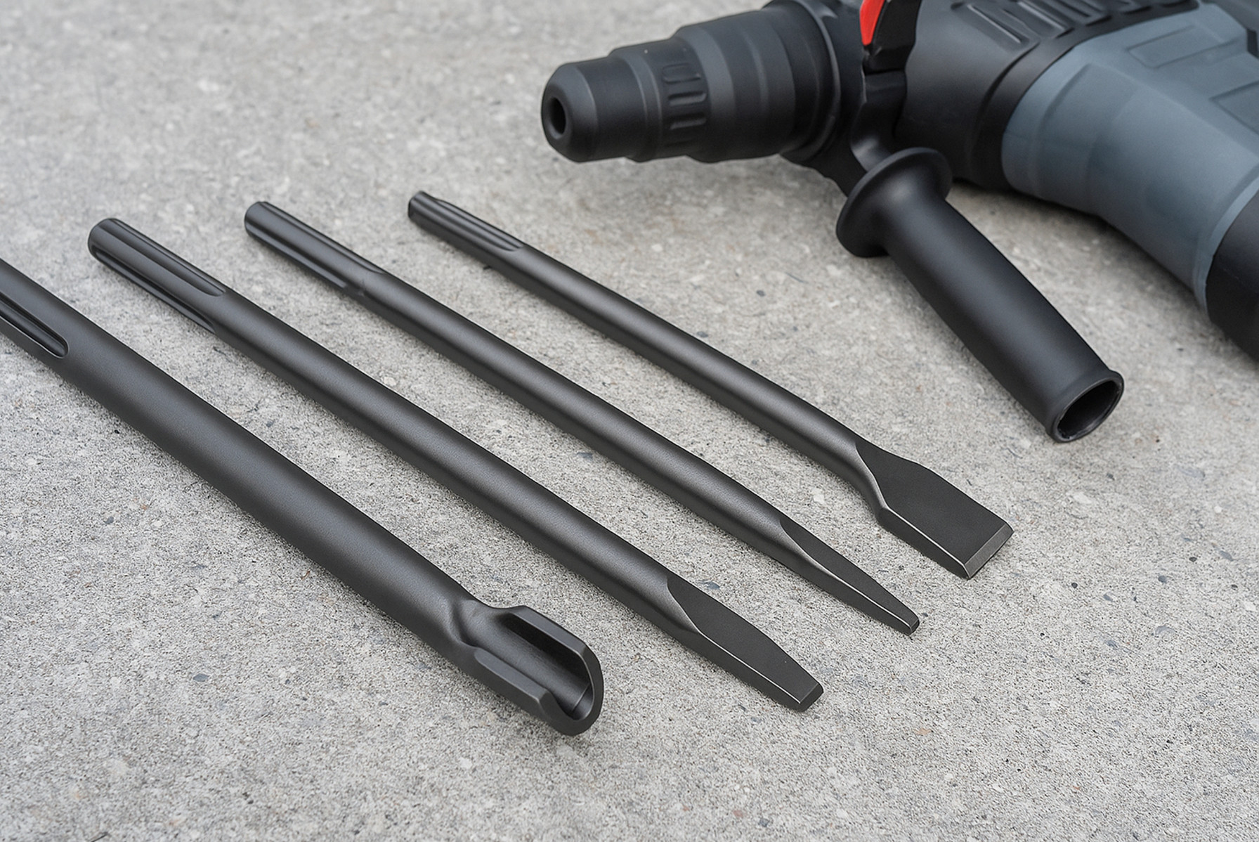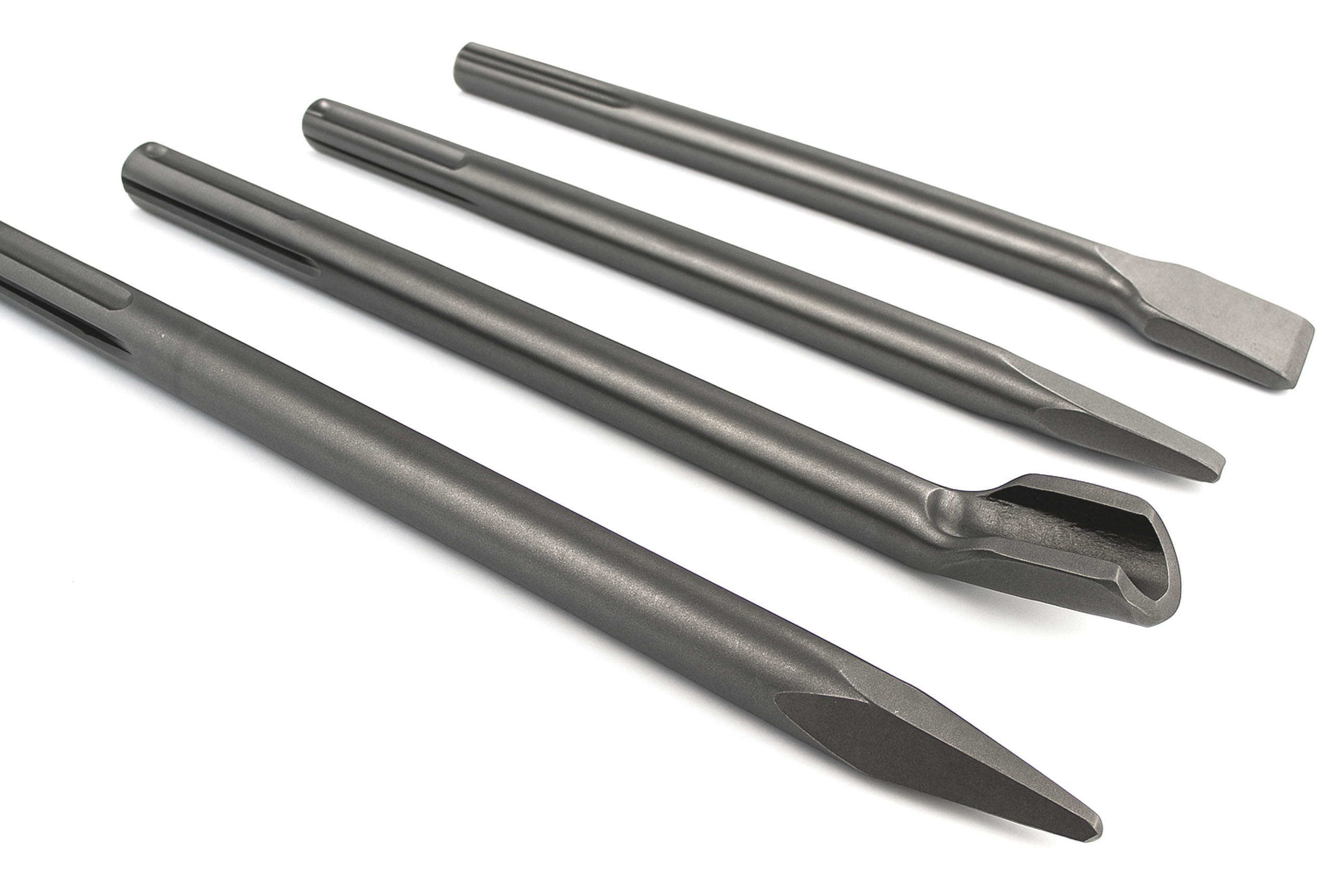Solidny zestaw dłut wykonany z hartowanej stali wysokowęglowej – idealny do prac rozbiórkowych, kucia i obróbki betonu, cegły czy kamienia. Kompatybilny z wszystkimi młotami udarowymi posiadającymi uchwyt SDS MAX.