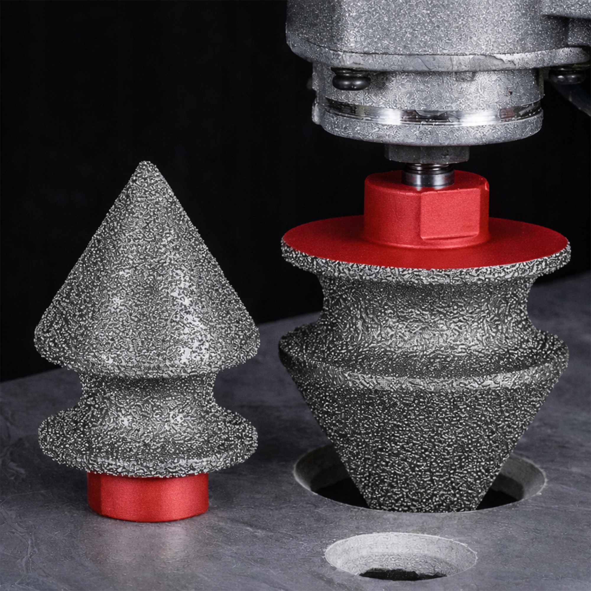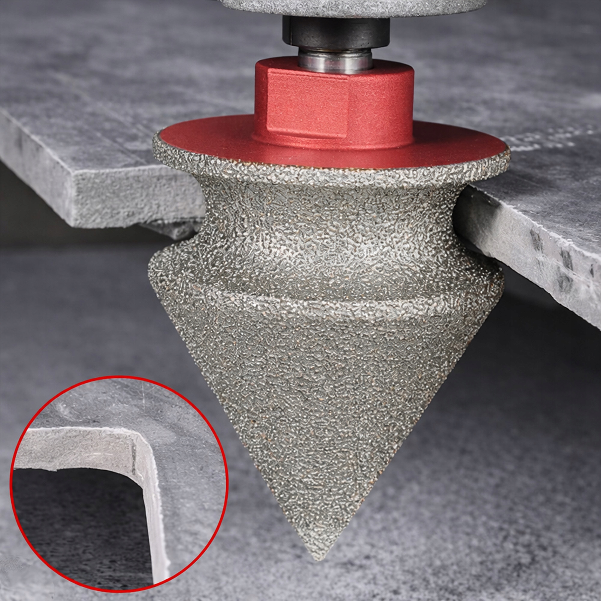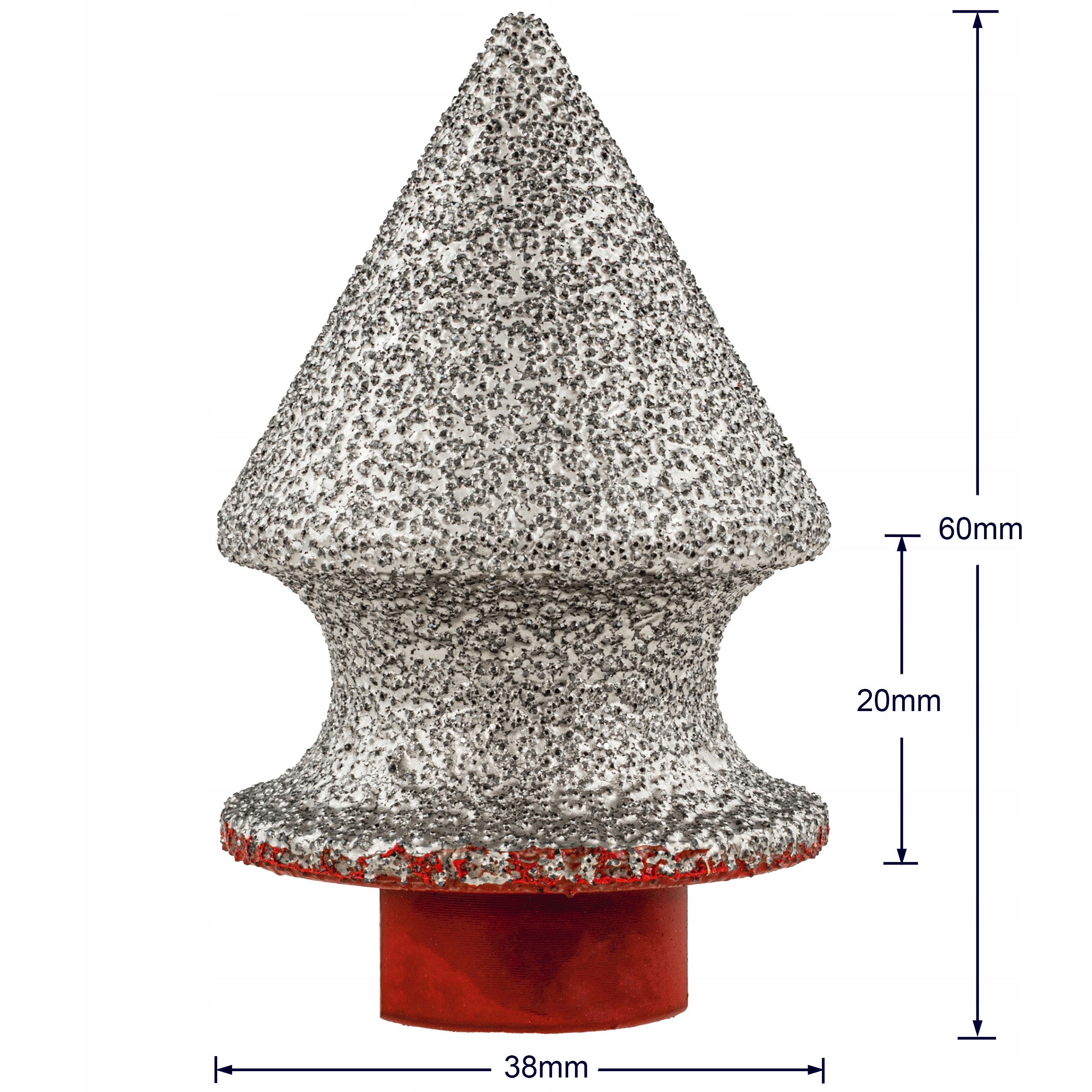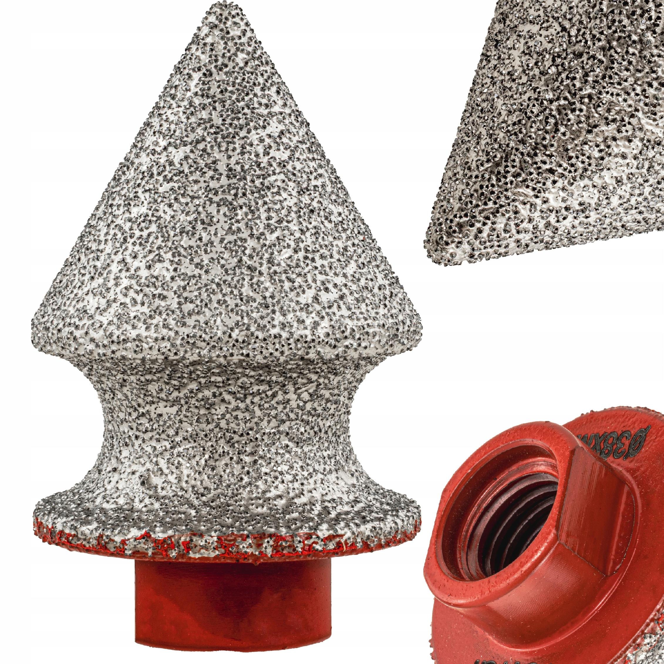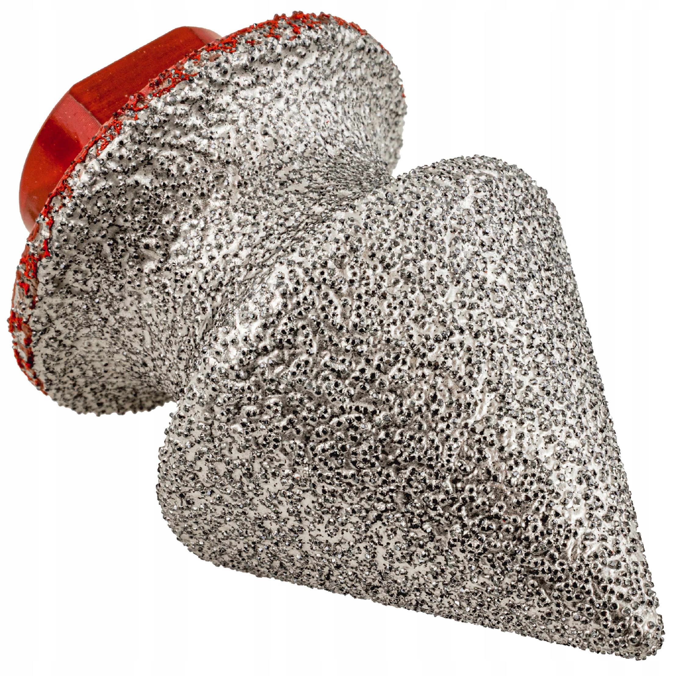 Profesjonalny frez stożkowy diamentowy 38 mm przeznaczony do precyzyjnego zaokrąglania, fazowania oraz szlifowania otworów w gresie, ceramice i kamieniu naturalnym. Stożkowa konstrukcja umożliwia płynne modelowanie krawędzi oraz bezpieczne powiększanie wcześniej wykonanych otworów bez ryzyka wyszczerbień.