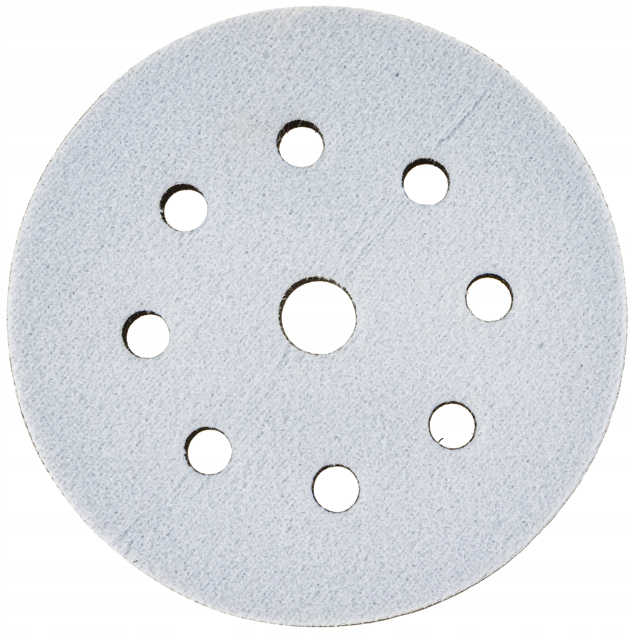 Profesjonalna gąbka amortyzująco–dystansowa do talerzy szlifierskich o średnicy 125 mm. Wykonana z miękkiej pianki o grubości 10 mm, zapewnia równomierne przyleganie krążków ściernych oraz komfortową pracę. Dzięki rzepowi i welurowej powierzchni mocowanie krążków jest szybkie i pewne, a otwory (8+1H) umożliwiają odciąg pyłu w szlifierkach z systemem odpylania.