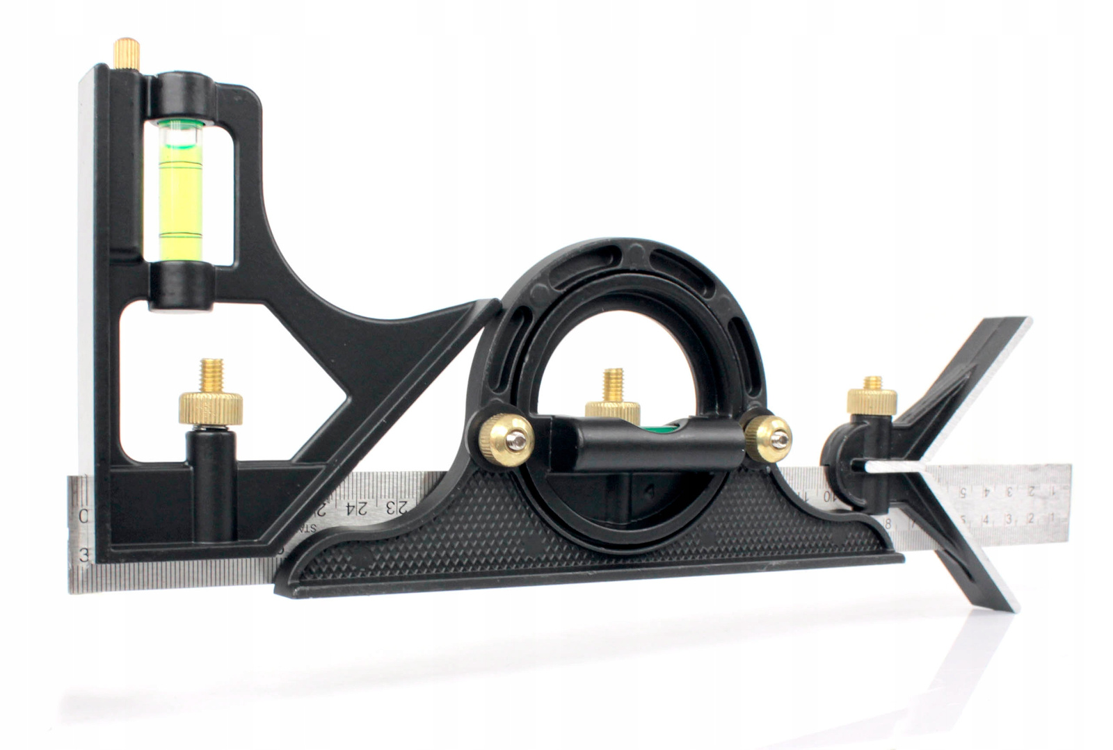 ✅ Kątownik uniwersalny (kombinowany) 300mm z wbudowaną poziomicą i metalowym rysikiem