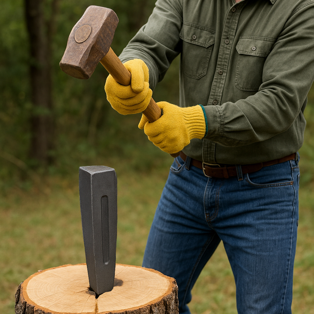 - Skuteczne rozłupywanie drewna – specjalnie zaprojektowany kształt ułatwia dzielenie pni na mniejsze kawałki.