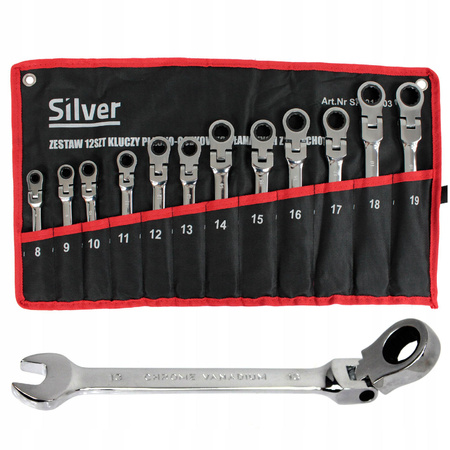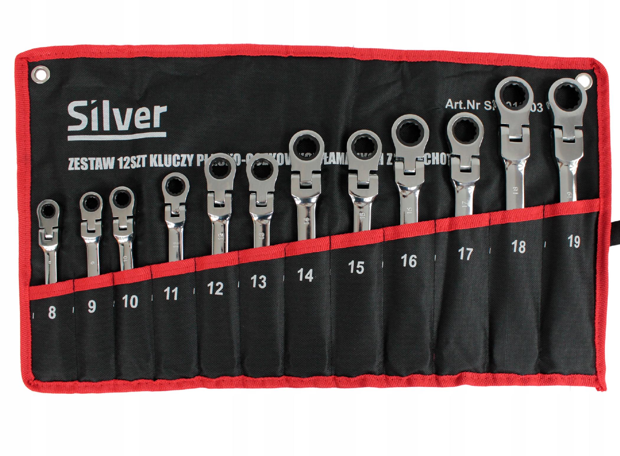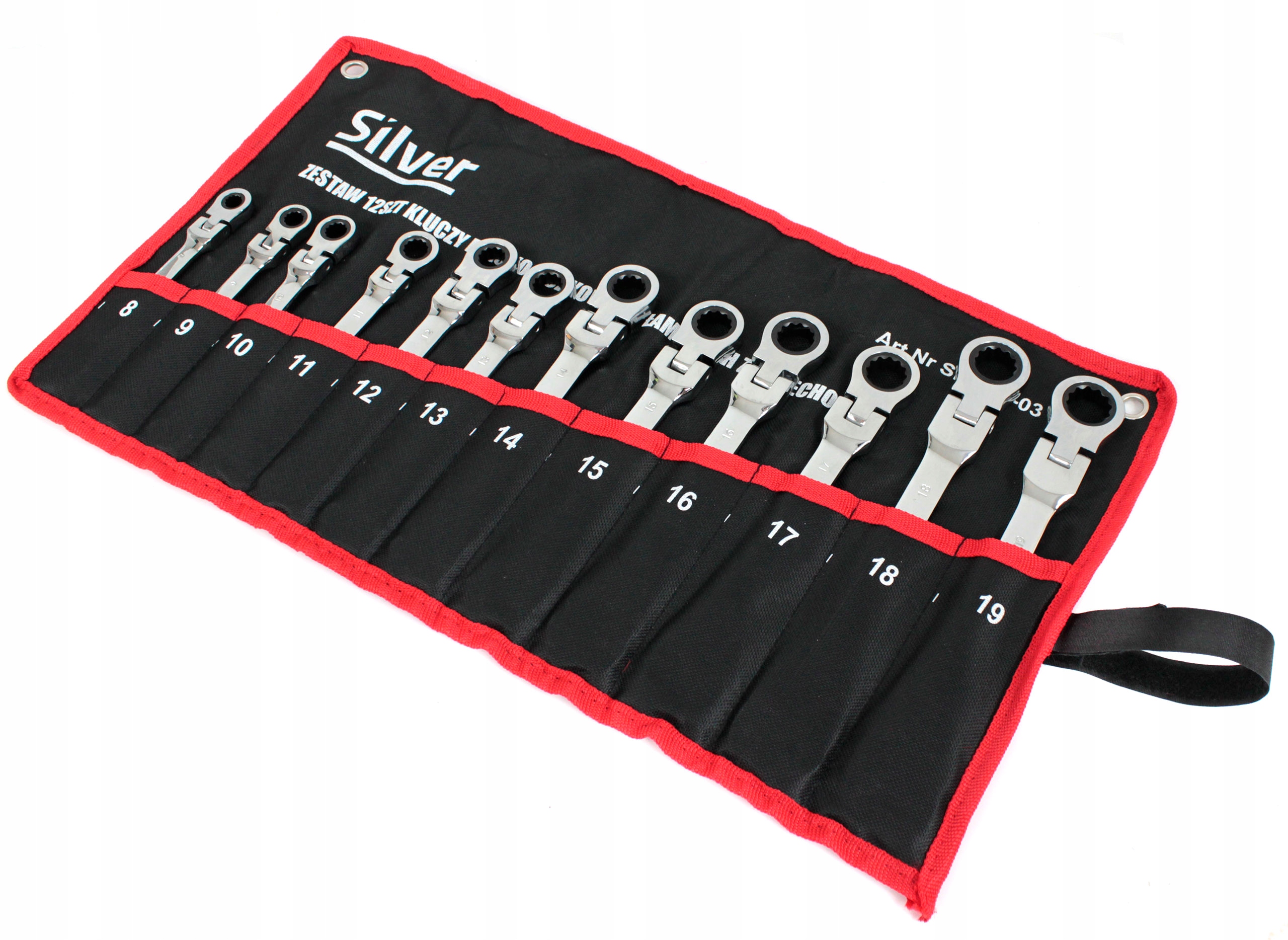 KLUCZE PŁASKO OCZKOWE Z GRZECHOTKĄ ŁAMANE 8-19mm 12 EL ZESTAW KLUCZY