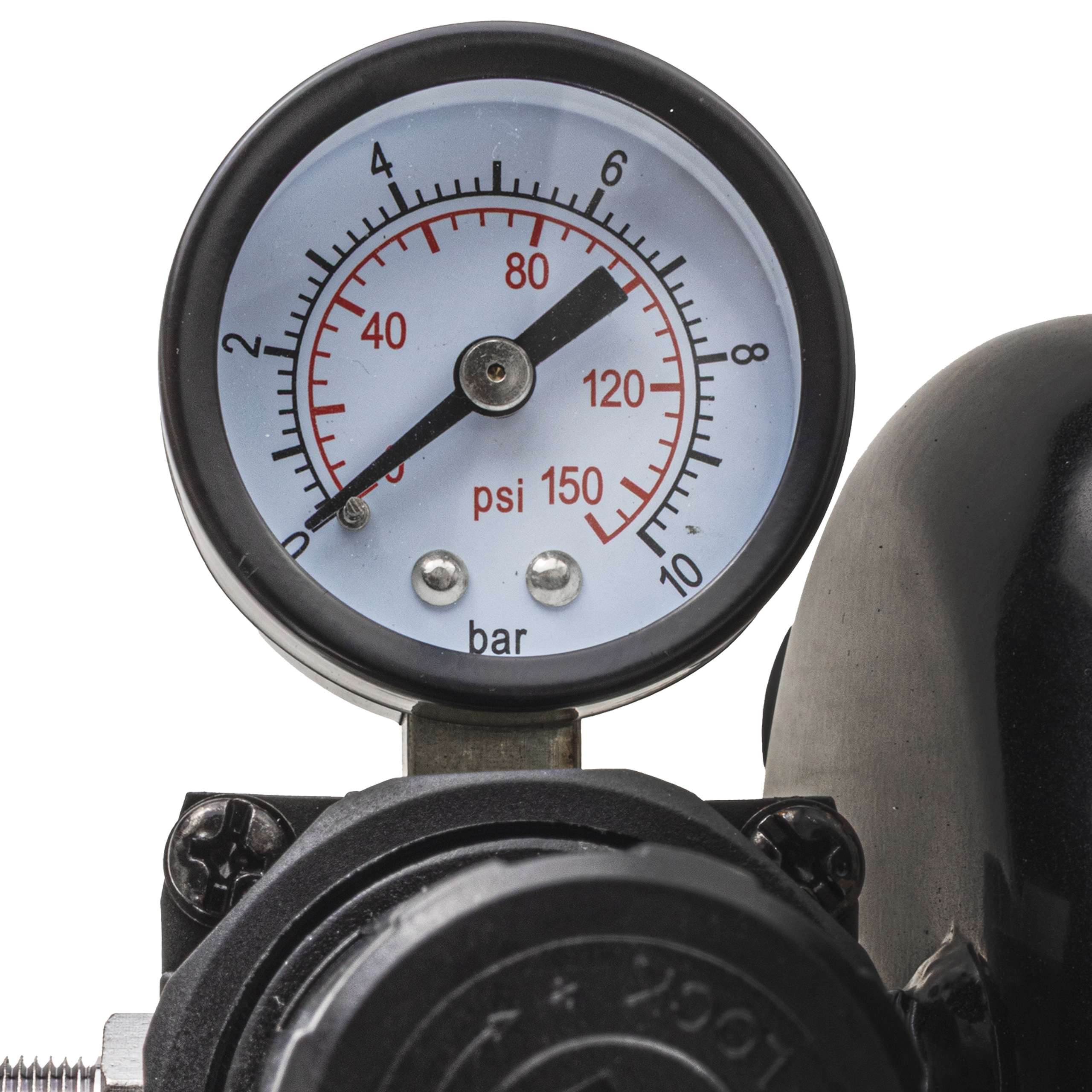 - Reduktor z blokadą i filtrem – precyzyjna regulacja ciśnienia i eliminacja wilgoci z powietrza.