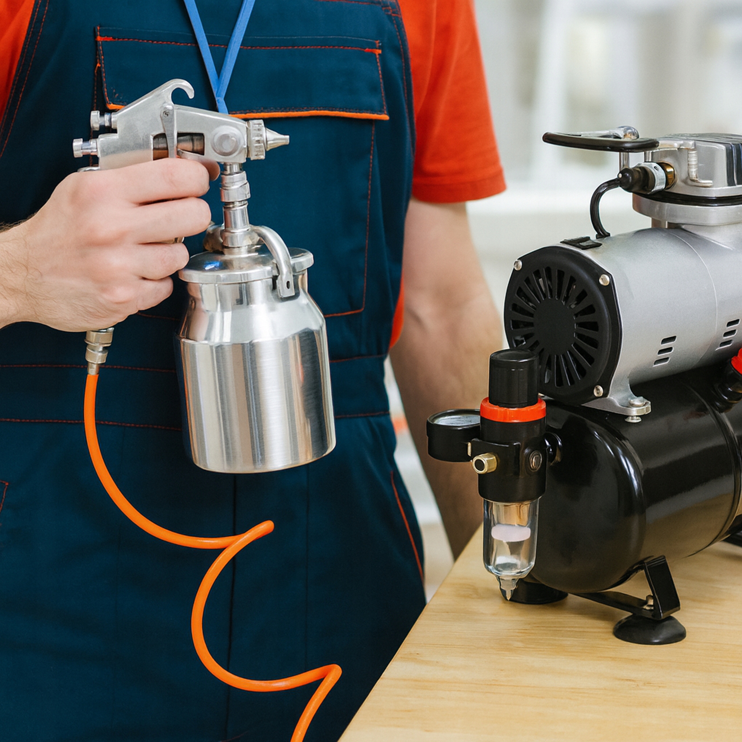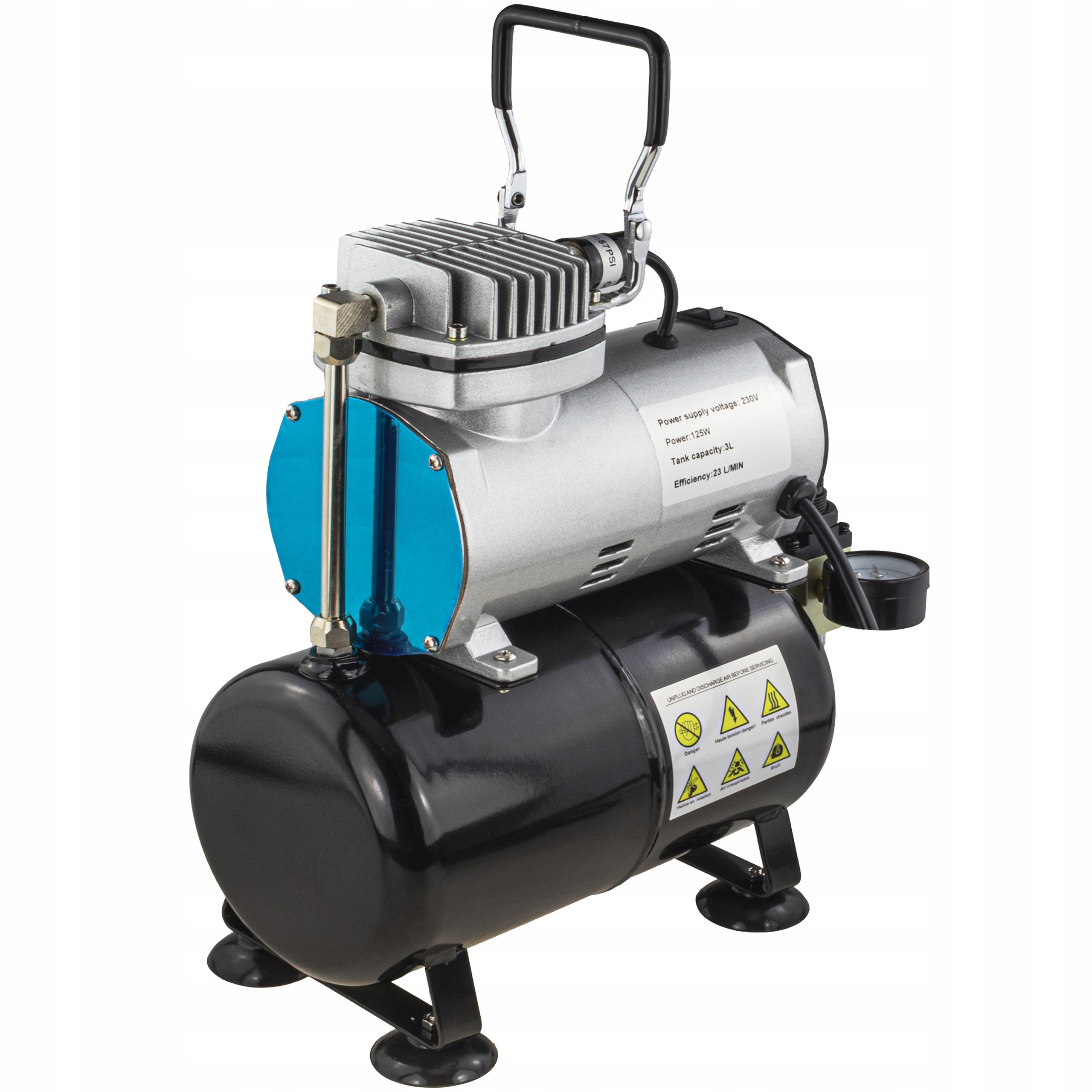 Kompaktowy i wydajny kompresor modelarski to idealne rozwiązanie dla osób pracujących z aerografem. Dzięki zbiornikowi 3L zapewnia stabilne ciśnienie i eliminuje pulsowanie powietrza, co przekłada się na precyzję nanoszonej farby.