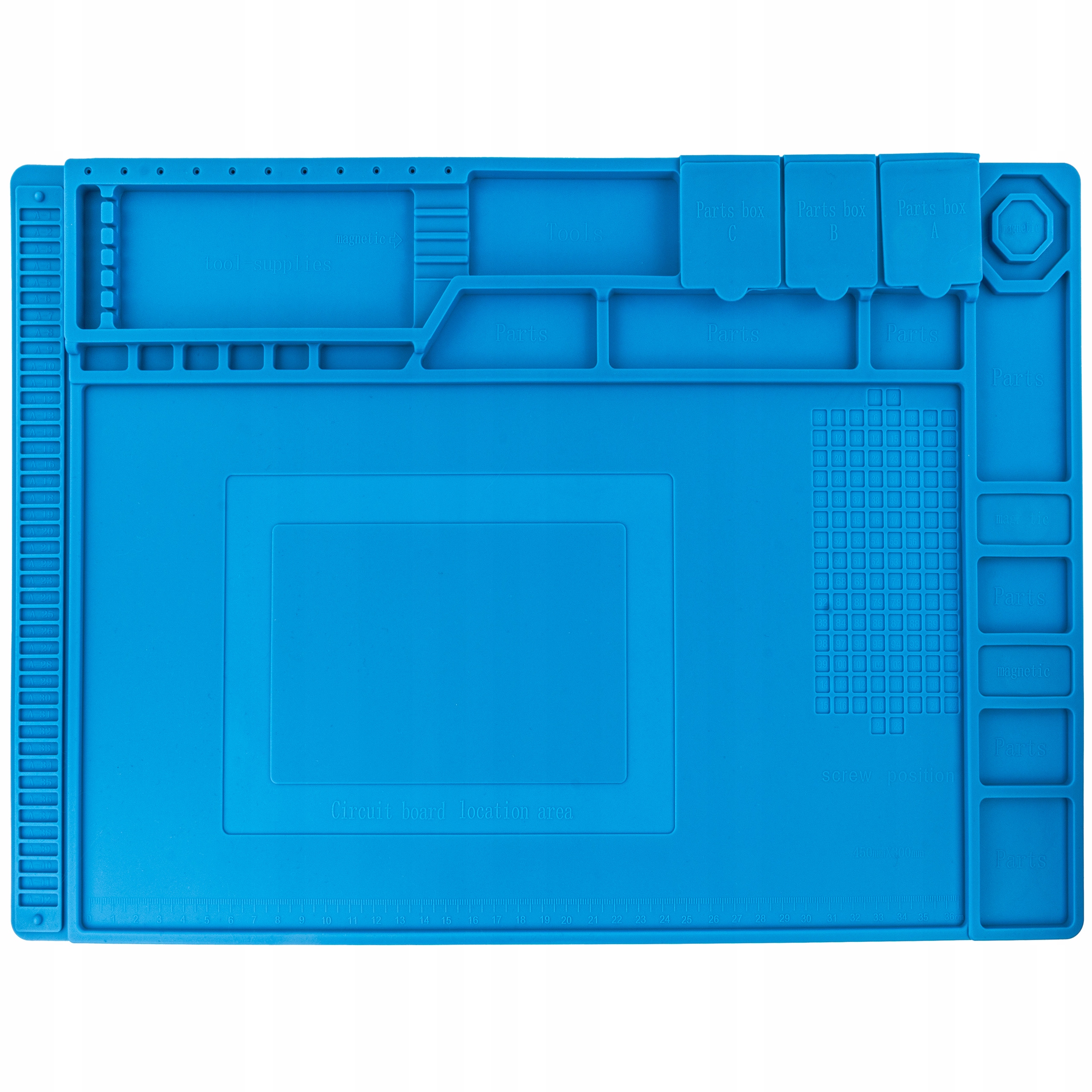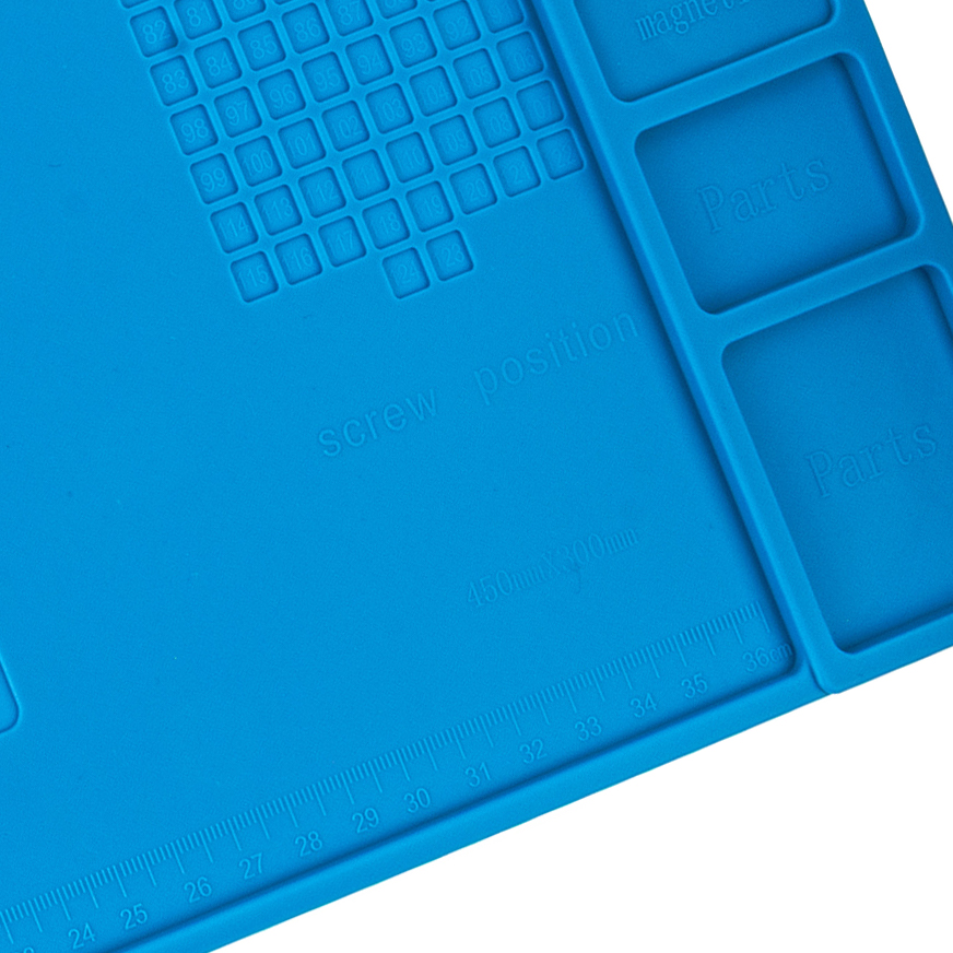 Mata silikonowa 450 x 300 mm zapewnia wygodę pracy i porządek na stanowisku. Dzięki niej naprawy urządzeń elektronicznych stają się szybsze, łatwiejsze i bardziej profesjonalne.