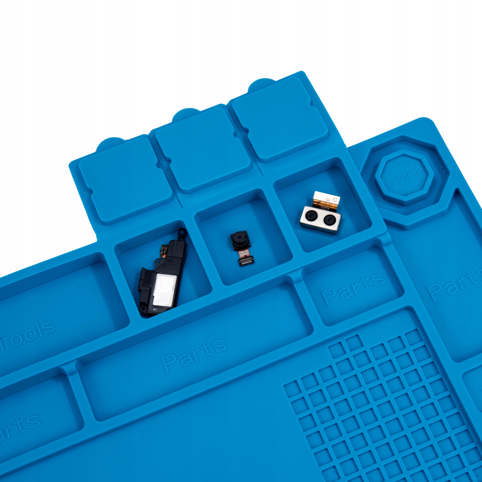 ➡️ Magnetyczne pola przytrzymują drobne elementy – nic nie spadnie ze stołu i nie zginie w trakcie pracy.