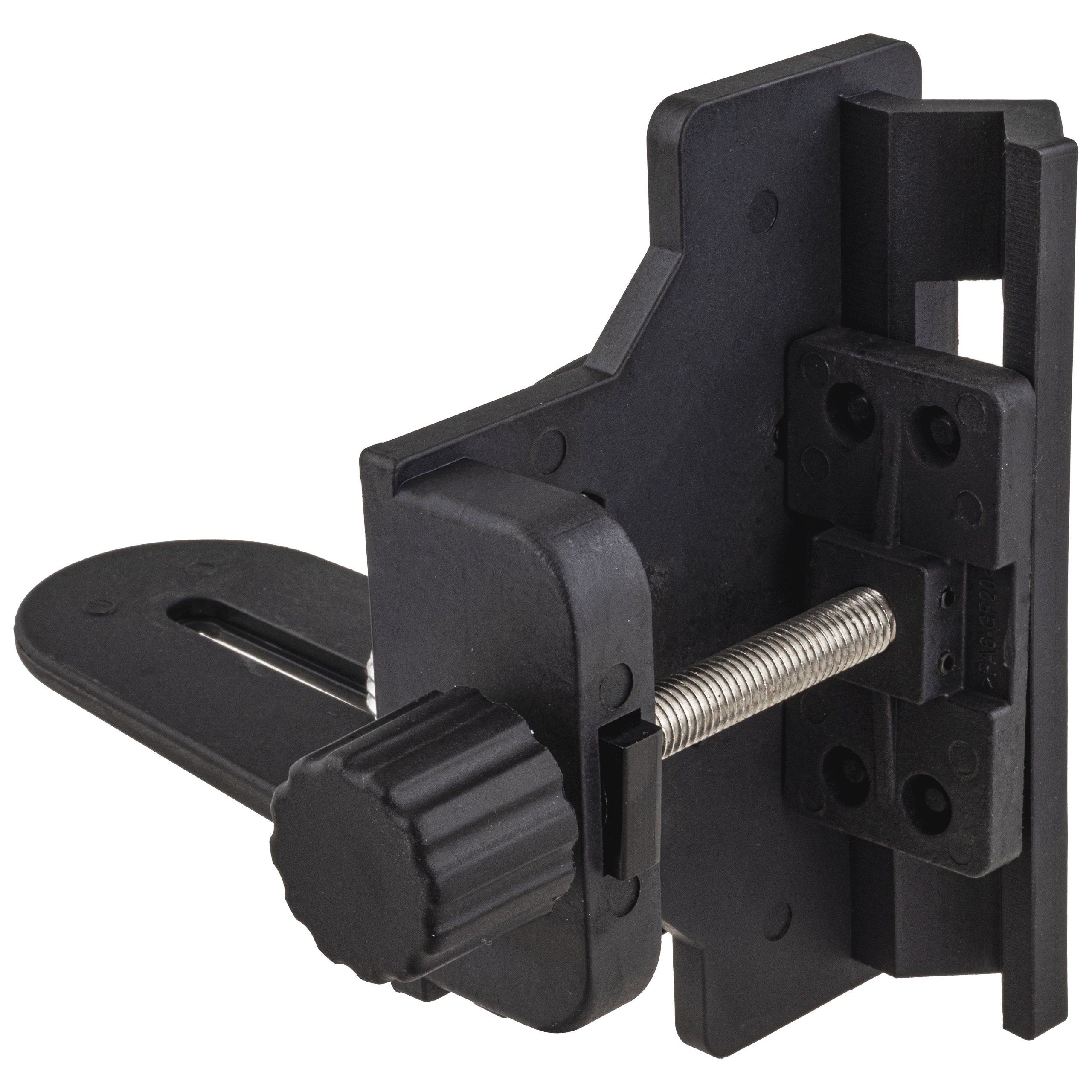 Uchwyt posiada system docisku z pokrętłem, dzięki czemu pasuje do tyczek o różnej średnicy.