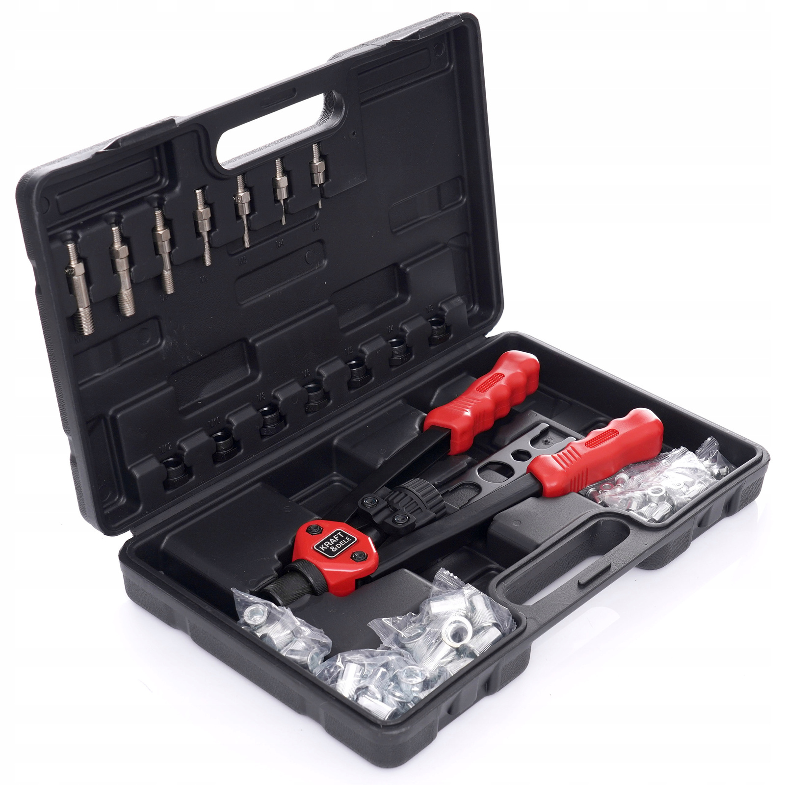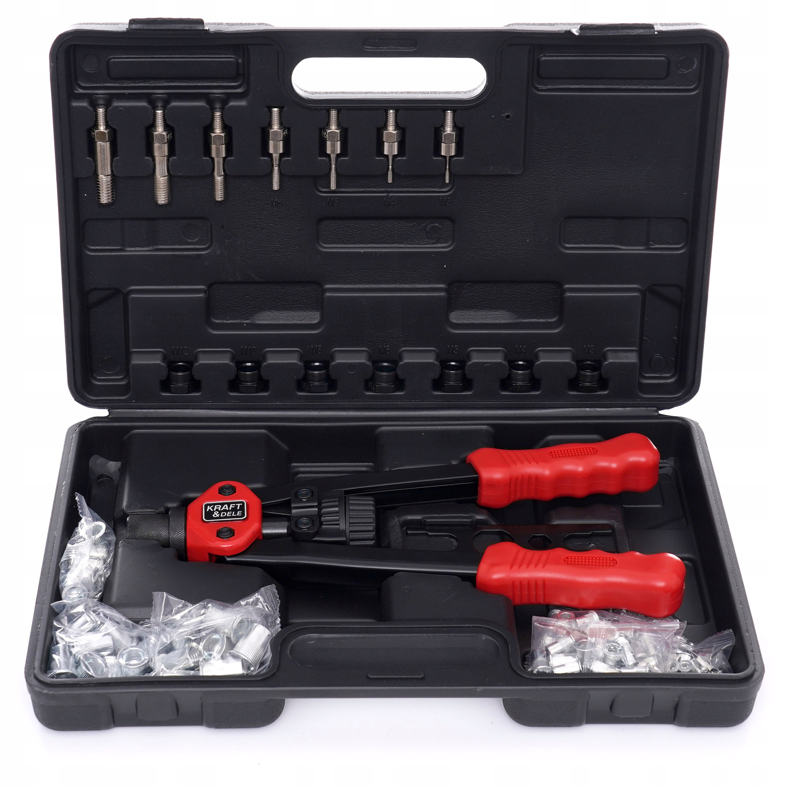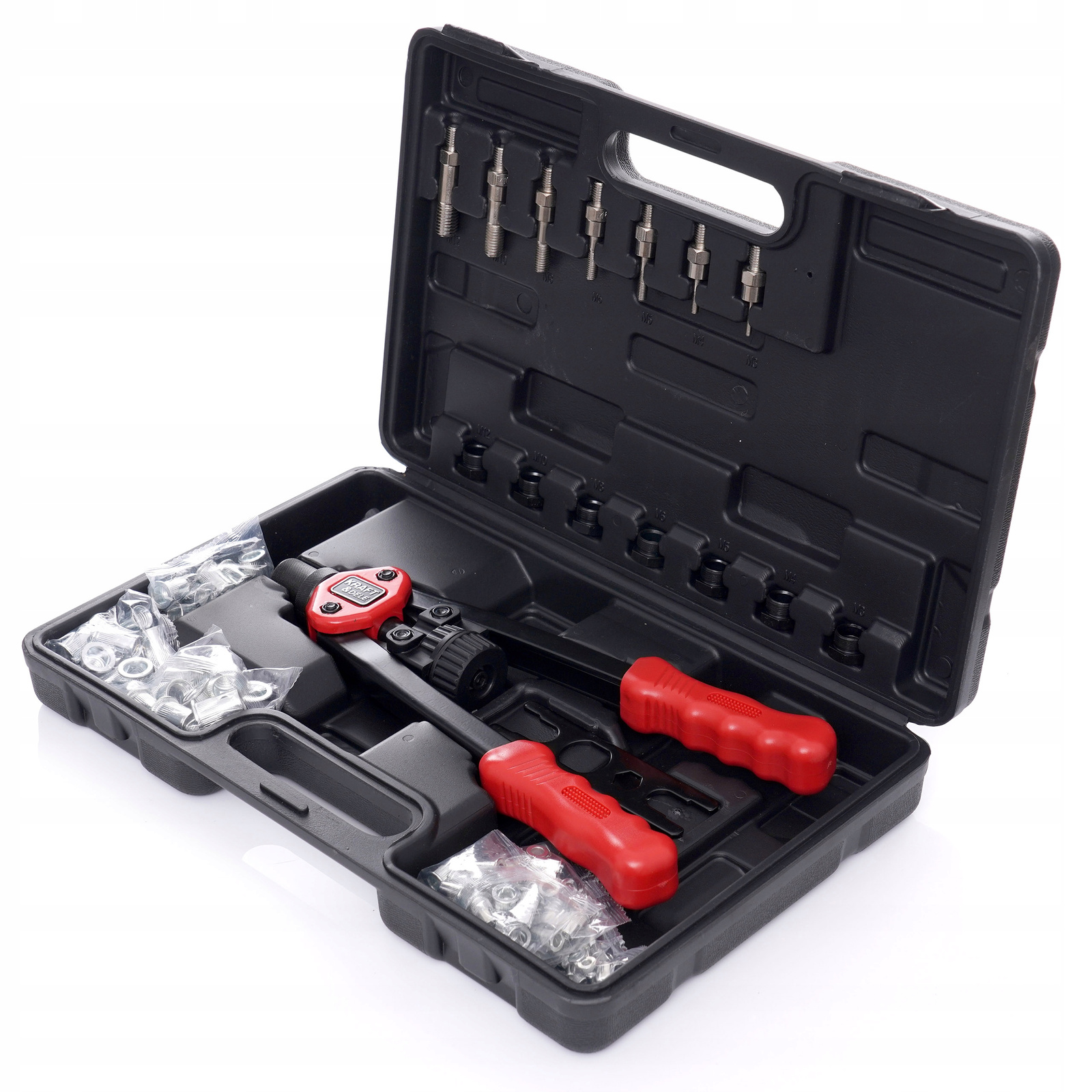 Zestaw idealny do osadzania nitów gwintowanych w cienkich materiałach, takich jak blacha, plastik i włókno szklane.
