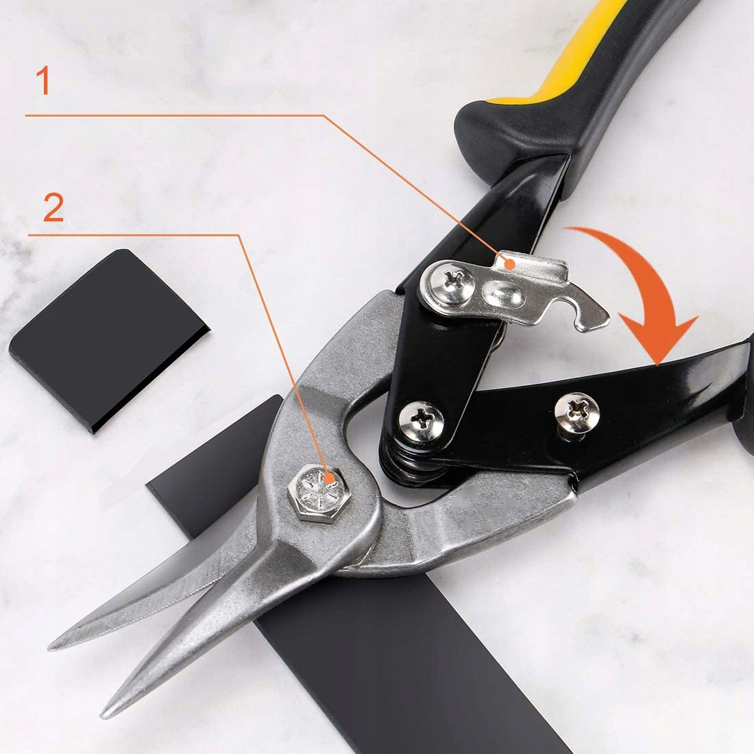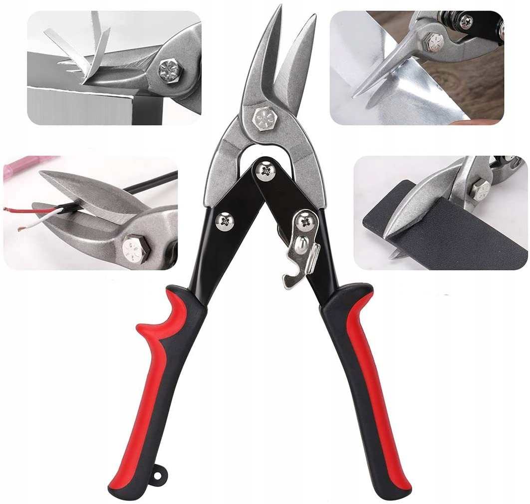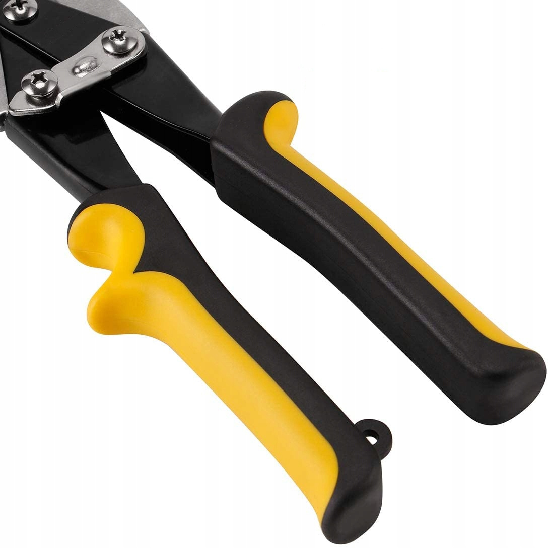 Zestaw nożyc do cięcia blachy narzędziowej. Hartowane ostrza nożyc, dodatkowo ząbkowane, co zapobiega ześlizgiwaniu się z ciętego materiału. Rękojeść o ergonomicznym kształcie zapewnia pewny i wygodny chwyt narzędzia. Nożyce posiadają mechanizm blokujący w pozycji zamkniętej. Znajdują zastosowanie w każdym profesjonalnym warsztacie blacharskim. Antypoślizgowa gumowa rękojeść zapewnia pewny stabilny chwyt podczas pracy.
