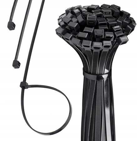 Gęste ząbki na całej długości pozwalają na precyzyjne dopasowanie pętli opaski do rozmiaru wiązki. Opaski możemy zaciskać ręcznie lub za pomocą specjalnego przyrządu.