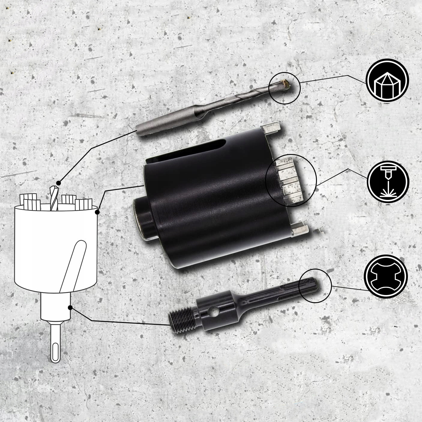 ✔️ Otwornica Idealnie sprawdza się podczas wiercenia otworów pod montaż gniazdek elektrycznych.