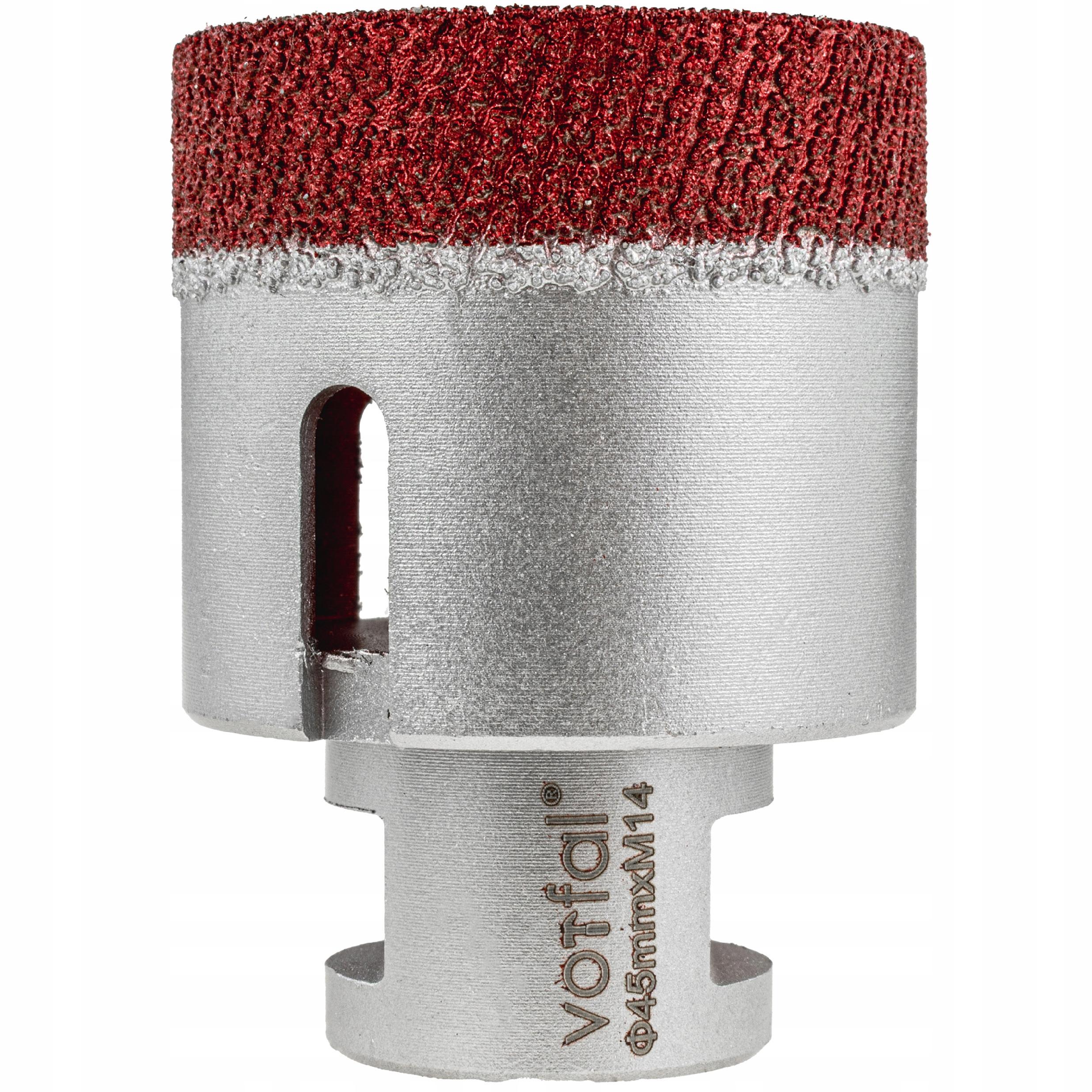 Wysokiej jakości wiertło diamentowe o średnicy 45 mm przeznaczone do wiercenia w twardych materiałach, takich jak gres, ceramika, marmur czy kamień naturalny. Dzięki zastosowaniu technologii próżniowego lutowania zapewnia wysoką trwałość i skuteczność.