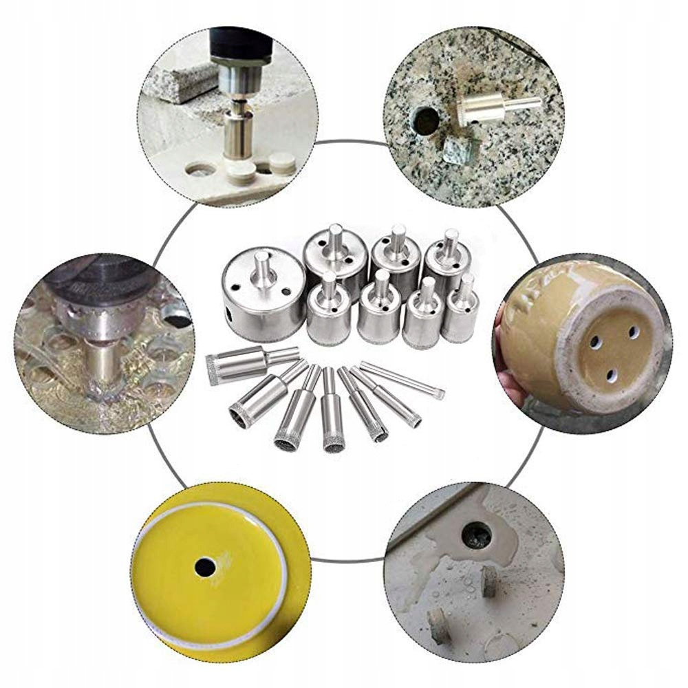 Zestaw zawiera nowe diamentowe otwornice w rozmiarach: