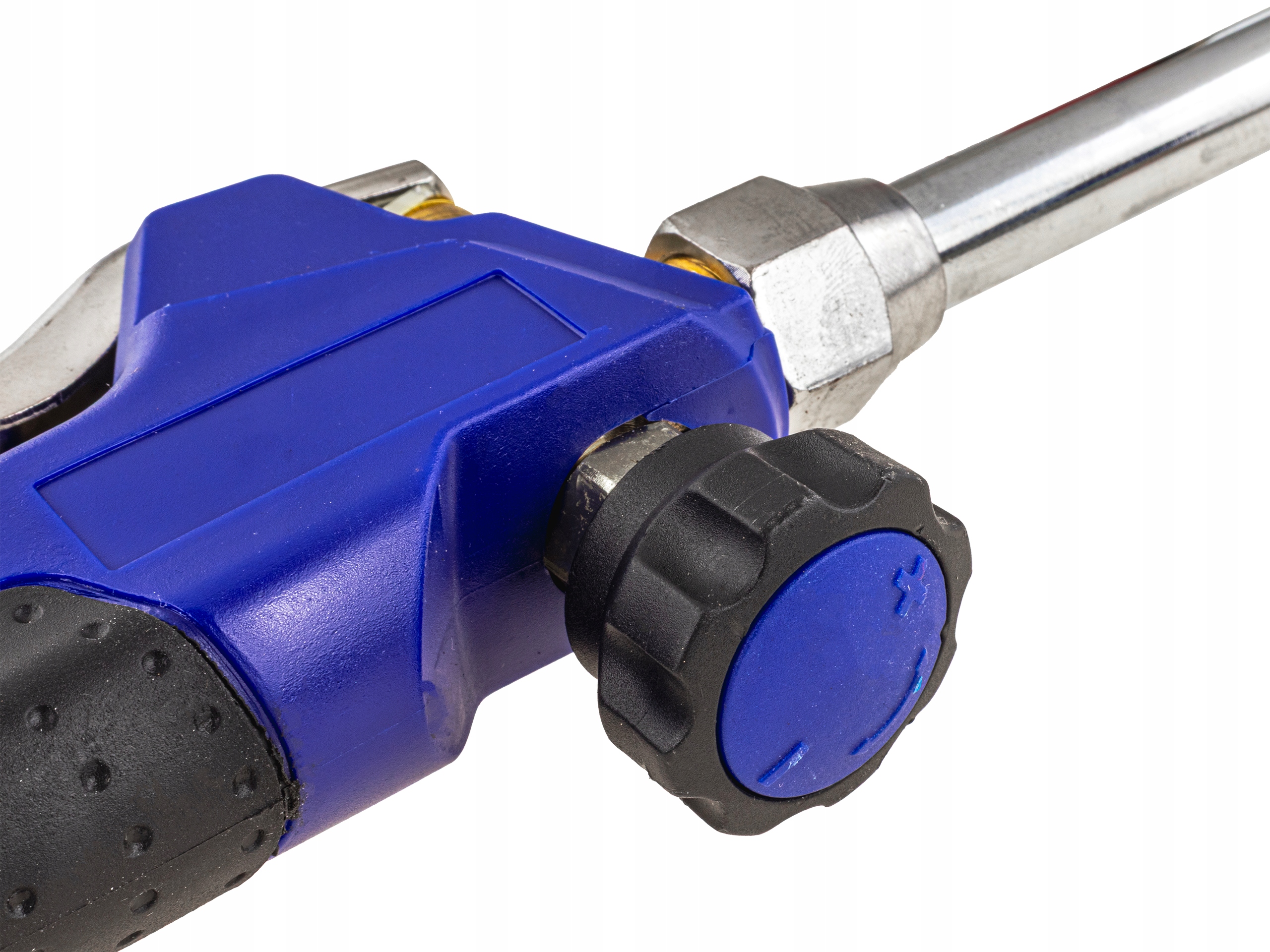 Palnik zasilany jest ciekłym propanem (LPG) i wyposażony w reduktor typu H33 z certyfikatem CE, wykonany zgodnie z normą EN16129. Dzięki regulowanemu ciśnieniu roboczemu (0,5–4 bar) można precyzyjnie dostosować moc płomienia do rodzaju wykonywanych prac.