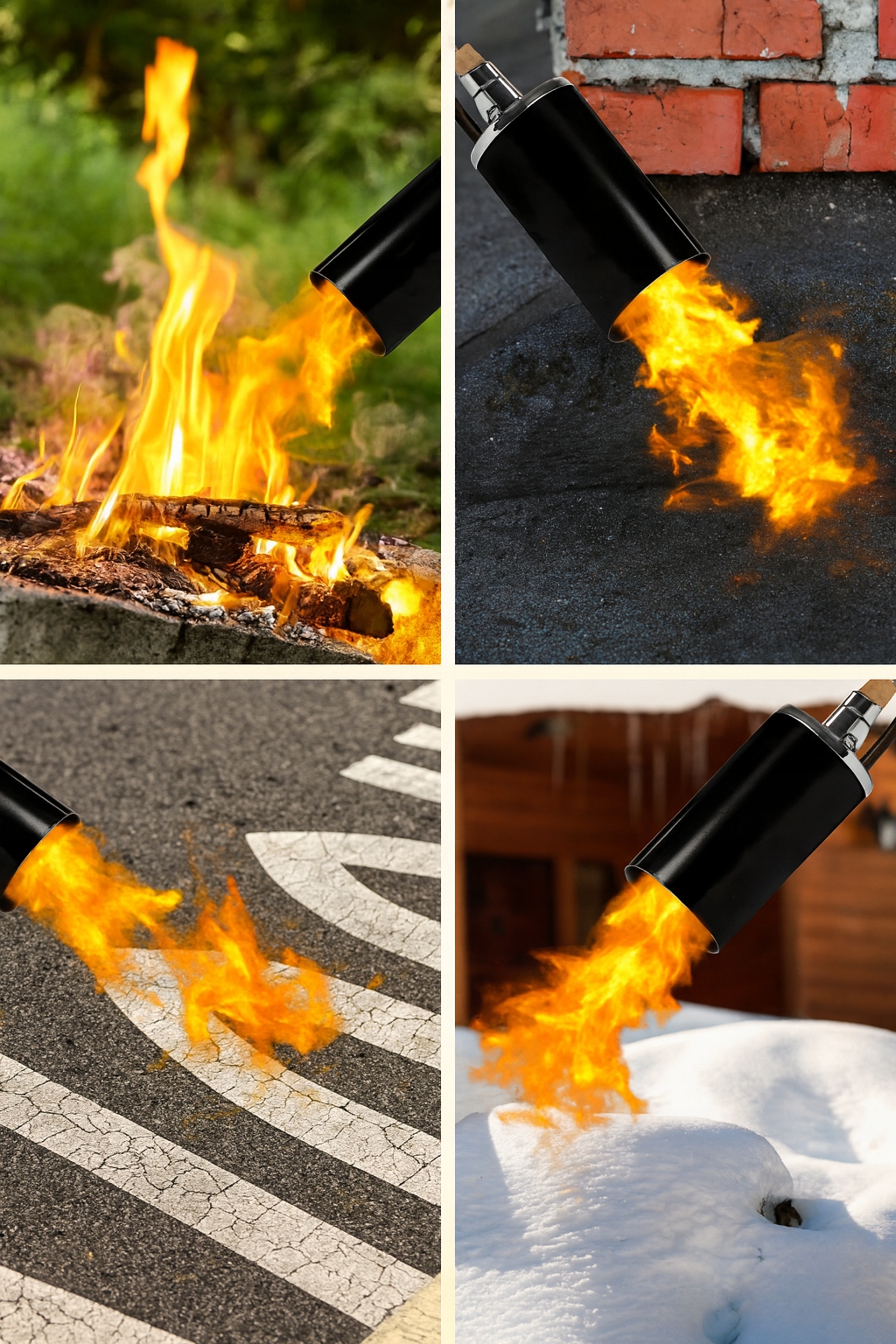 Ułatwia rozpalanie drewna, węgla lub innych materiałów opałowych. Przydatny również do osuszania i podgrzewania podłoża przed zgrzewaniem lub klejeniem.