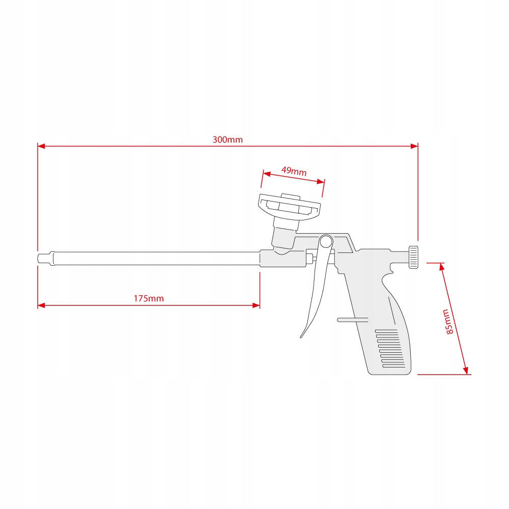 - pistolet posiada metalowe pokrętło do regulowania ilości podawanej pianki