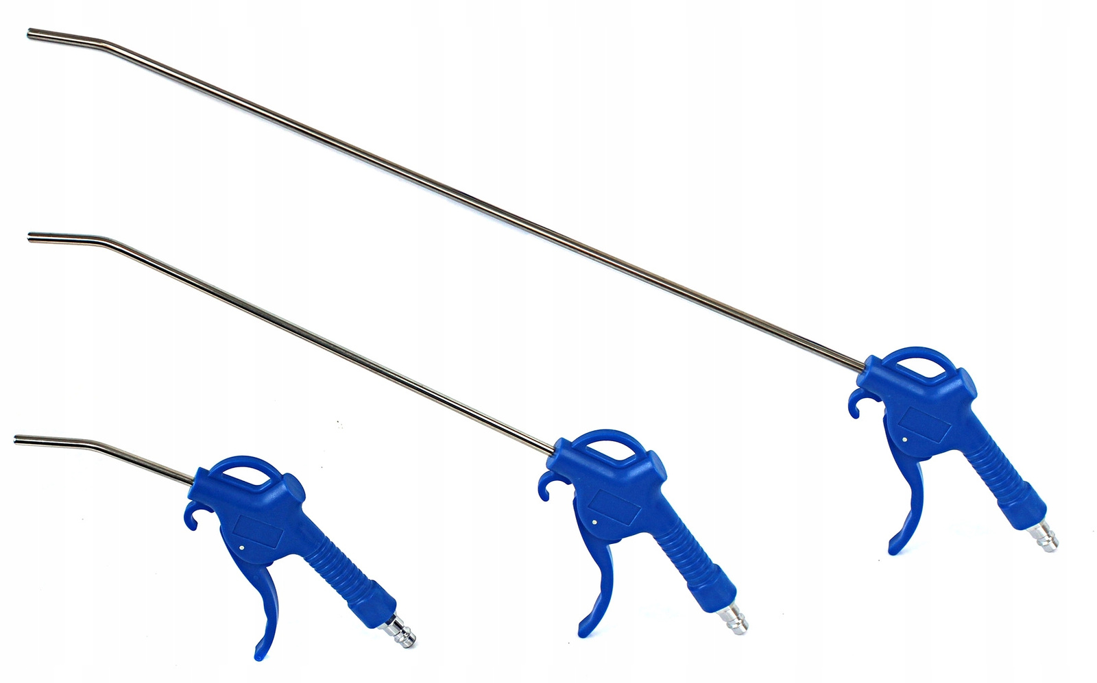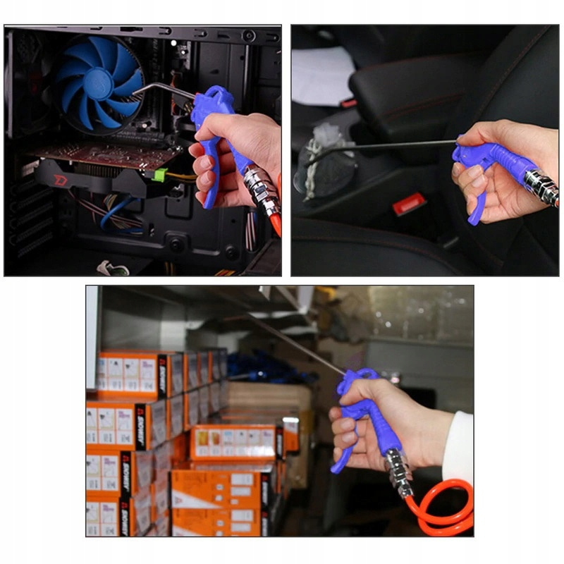 Wysokiej jakości zestaw do precyzyjnego przedmuchiwania, pomocny przy usuwaniu zanieczyszczeń z bardzo słabo dostępnych miejsc. W zestawie dostępne są 3 pistolety, które posiadają wygięte dysze 100, 300 i 500 mm. Pistolet jest solidne wykonany, a jego konstrukcja gwarantuje, że będzie wytrzymały oraz niezwykle poręczny.