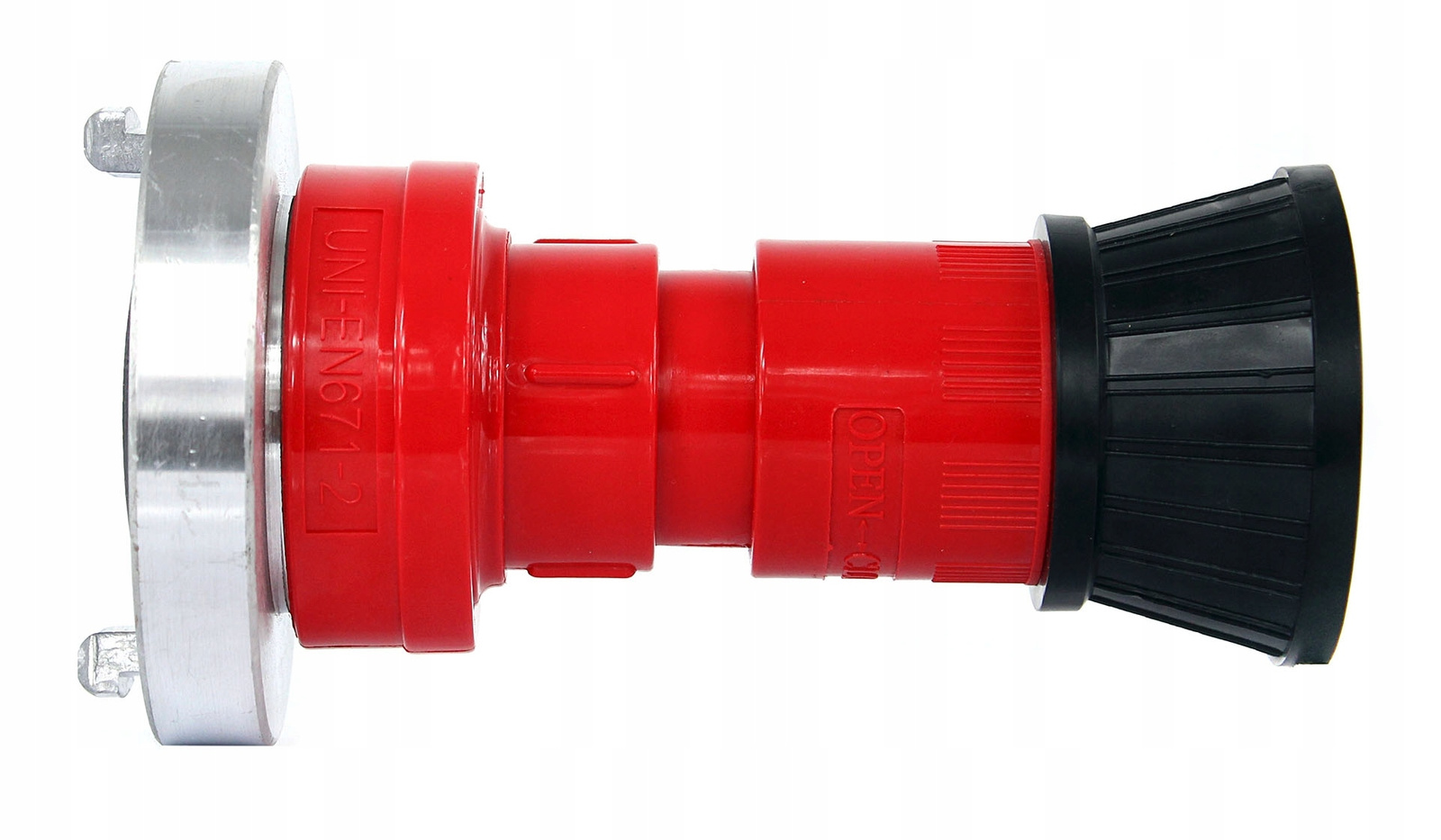 Prądownica do węża strażackiego fi 52 mm służy do otwierania, zamykania i ciągłej regulacji wydajności i rodzaju strumienia wody (rozproszonego i zwartego) w sprzęcie pożarniczym.