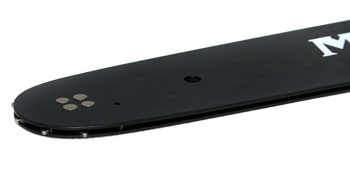 Prowadnice wykonane są z bardzo twardego materiału odpornego na ścieranie i wysoką temperaturę, jaka powstaje w czasie pracy pilarką łańcuchową. Sprawdzają się w najtrudniejszych warunkach nie ulegając uszkodzeniu. Idealnie przenoszą moc pilarki na wydajność cięcia. Zakończona zębatką.