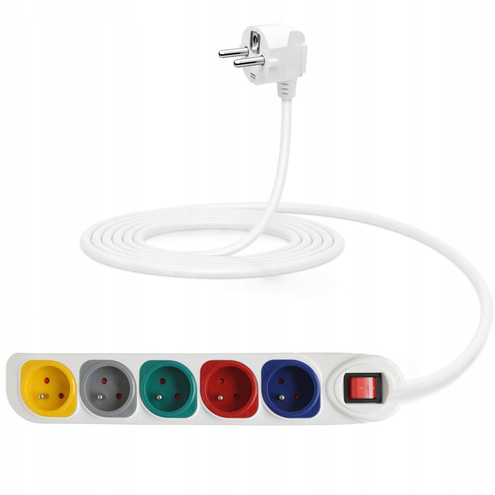 Przedłużacz 5 m 5 gniazdek z wyłącznikiem przeciążeniowym