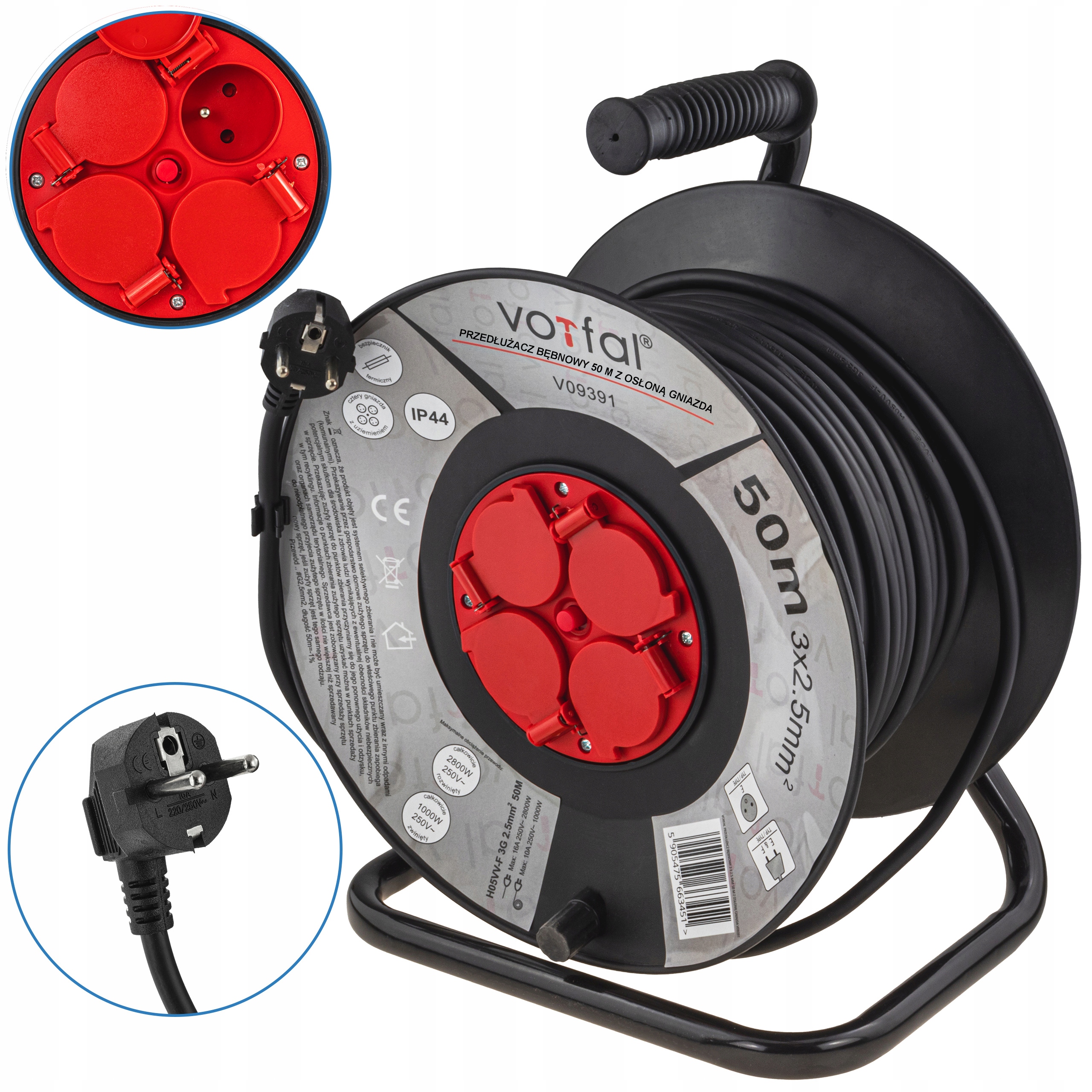 Przedłużacz bębnowy, ogrodowy 50 m Vorfal 3x2,5 mm² – solidność i bezpieczeństwo w pracy!