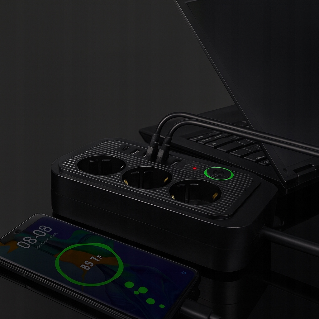 ✅ Włącznik ON/OFF – szybkie odłączenie wszystkich urządzeń jednym kliknięciem.