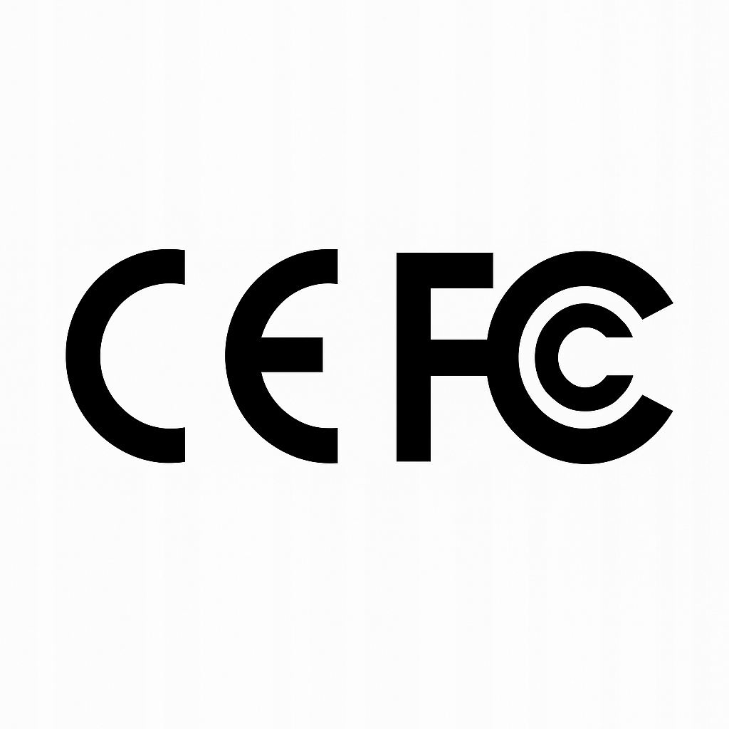 ✅ Certyfikaty CE i FCC – potwierdzają zgodność z europejskimi i amerykańskimi normami bezpieczeństwa i kompatybilności elektromagnetycznej.