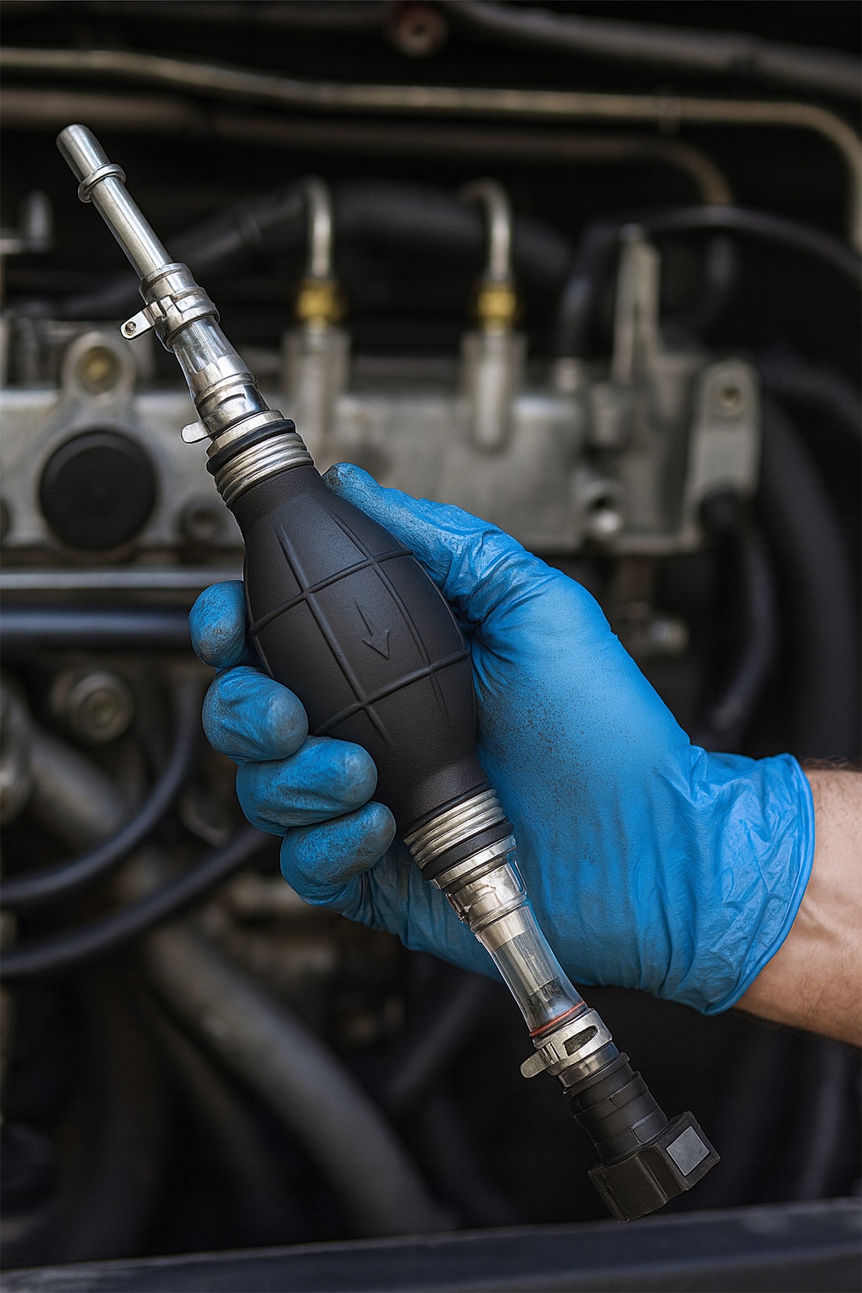 Ręczna pompa paliwa to niezawodne, uniwersalne narzędzie do odpowietrzania układów paliwowych Diesel po wymianie filtra, pustym baku lub pracach serwisowych.