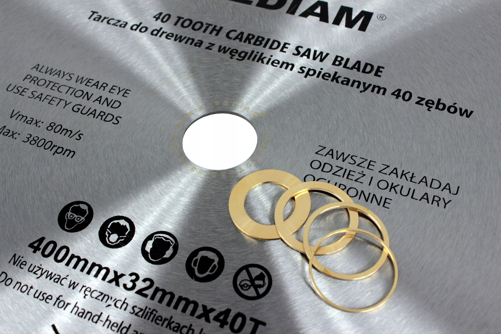 Pierścień pozwalający zredukowanie otworu wewnętrznego w tarczy do drewna, metalu, tarcz diamentowych i innych.