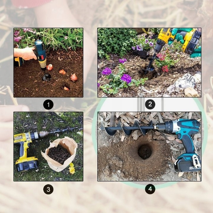 Konstrukcja spiralna ułatwiająca wiercenie w ziemi. Użyj świdra glebowego w odpowiednim terenie przy niskiej prędkości i uśmiechaj się podczas pracy. Otwór można wywiercić w kilka sekund.