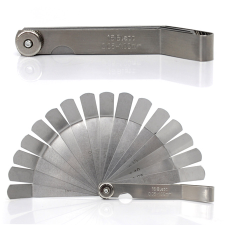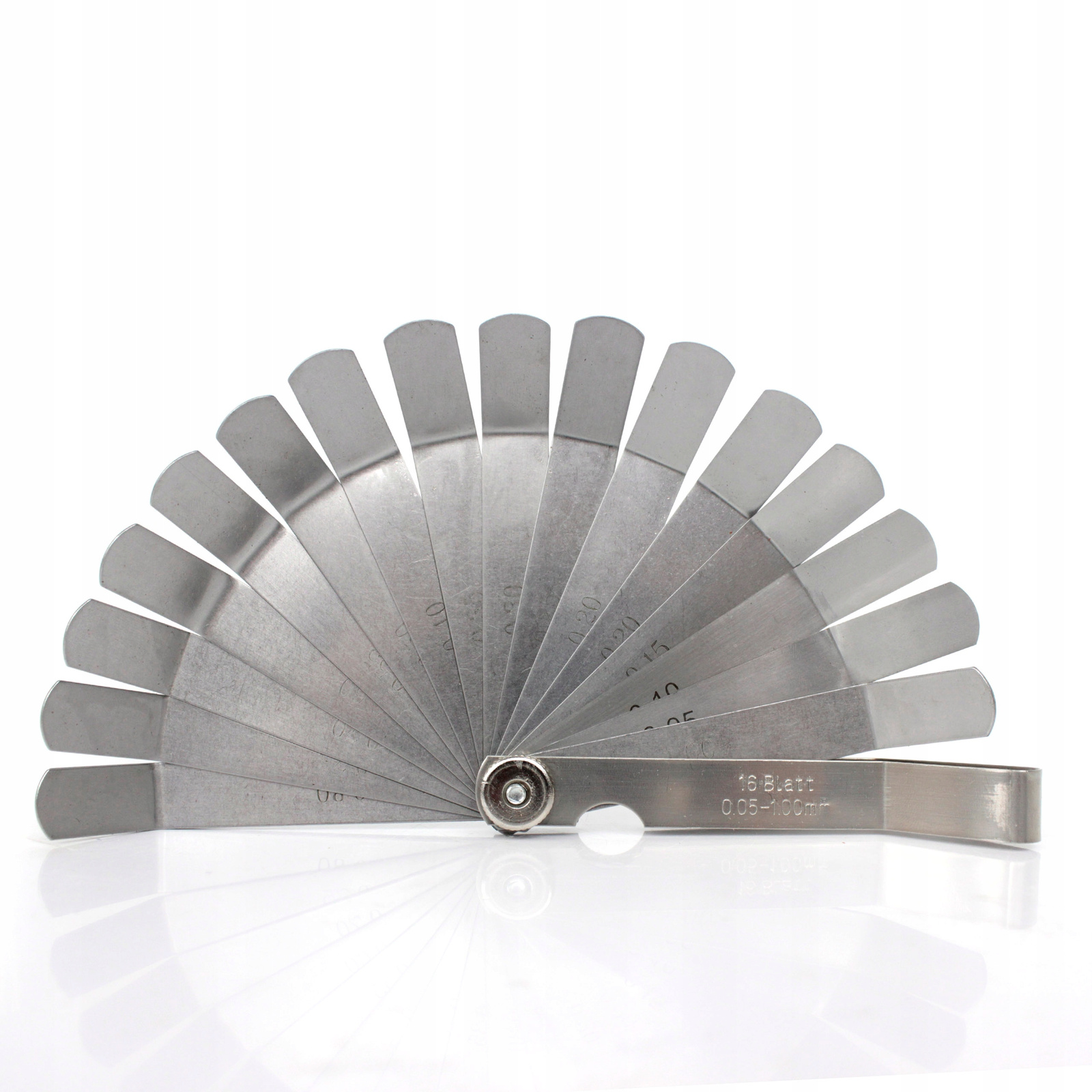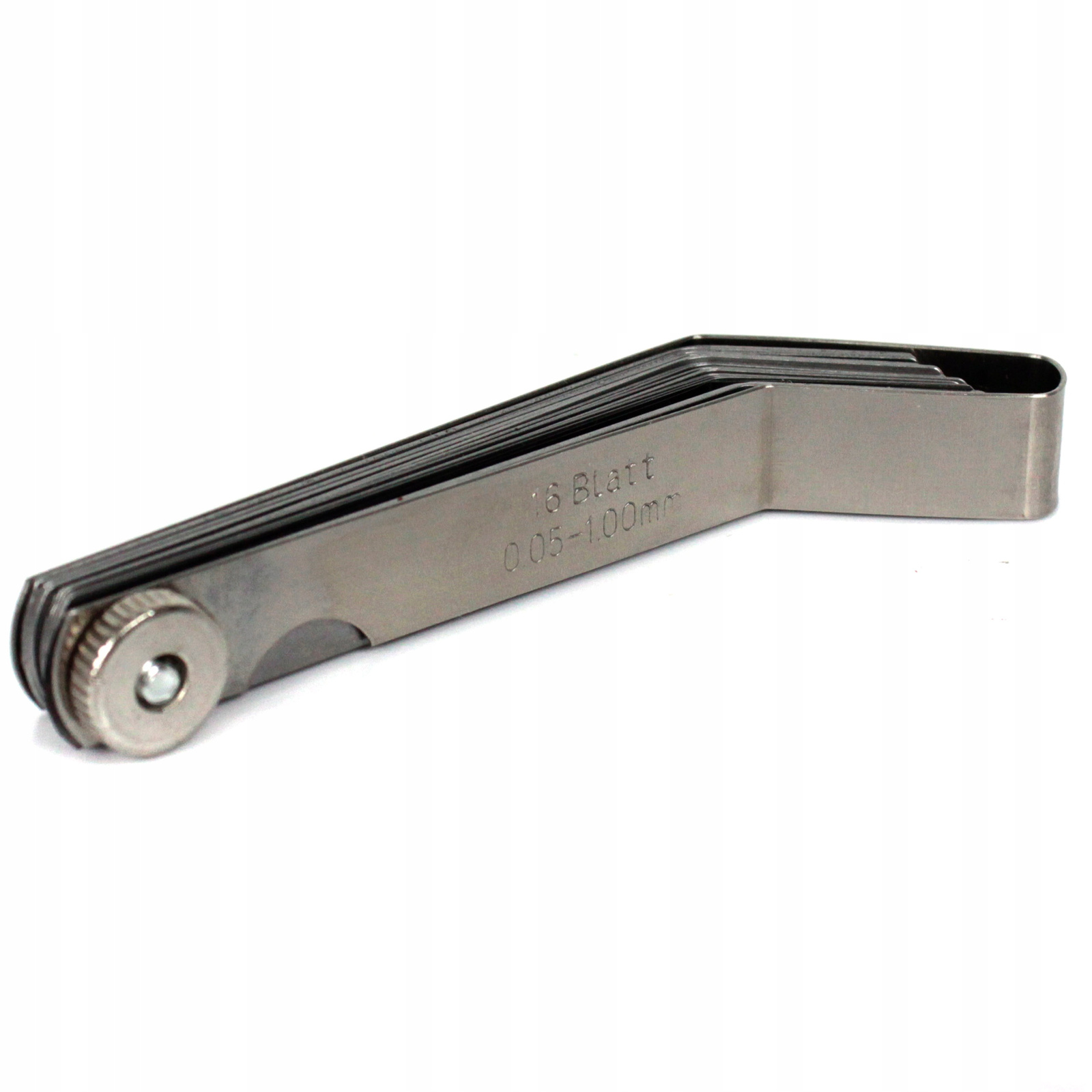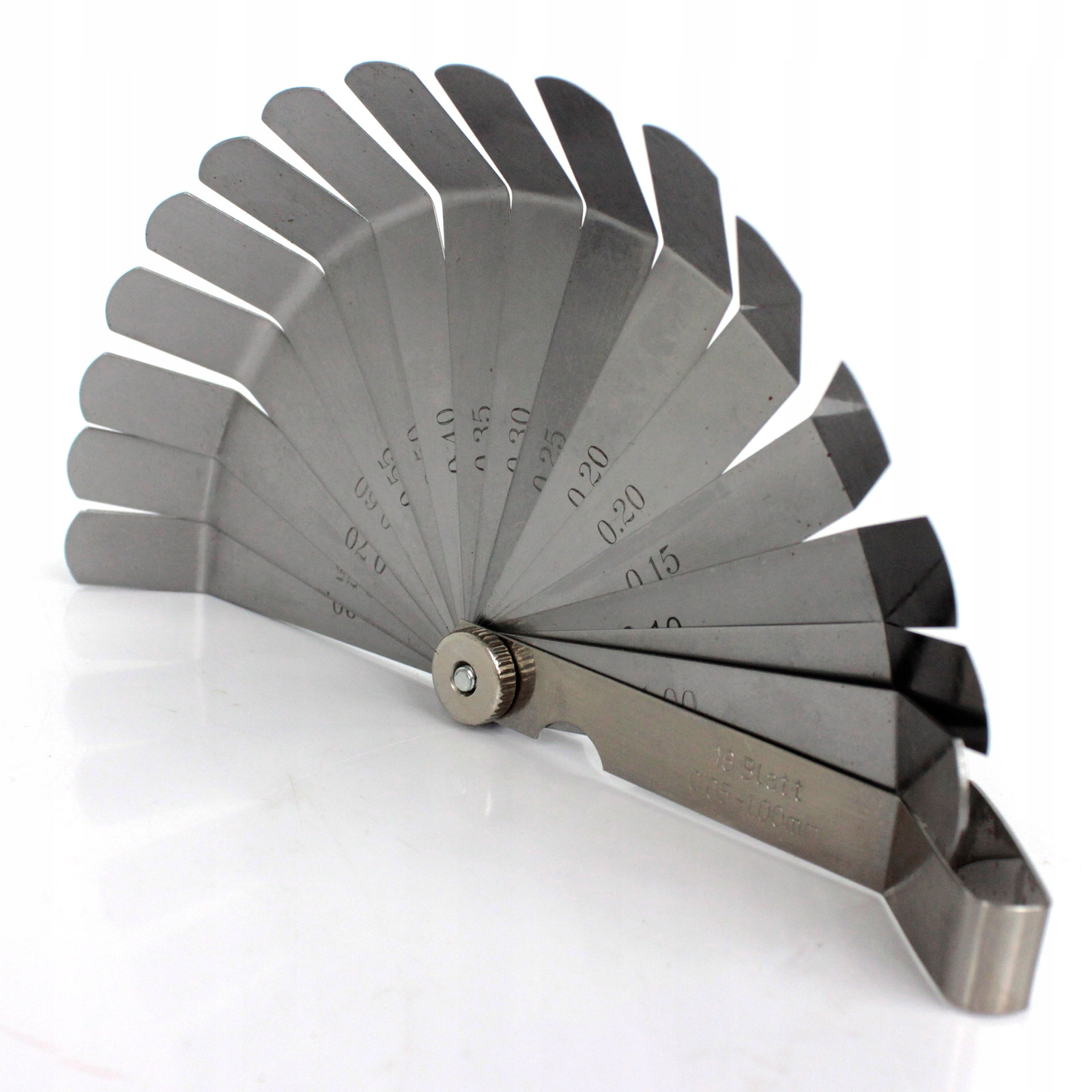 Niezbędny w każdym warsztacie. Posiada 16 listków pomiarowych o różnych grubościach w obudowie.