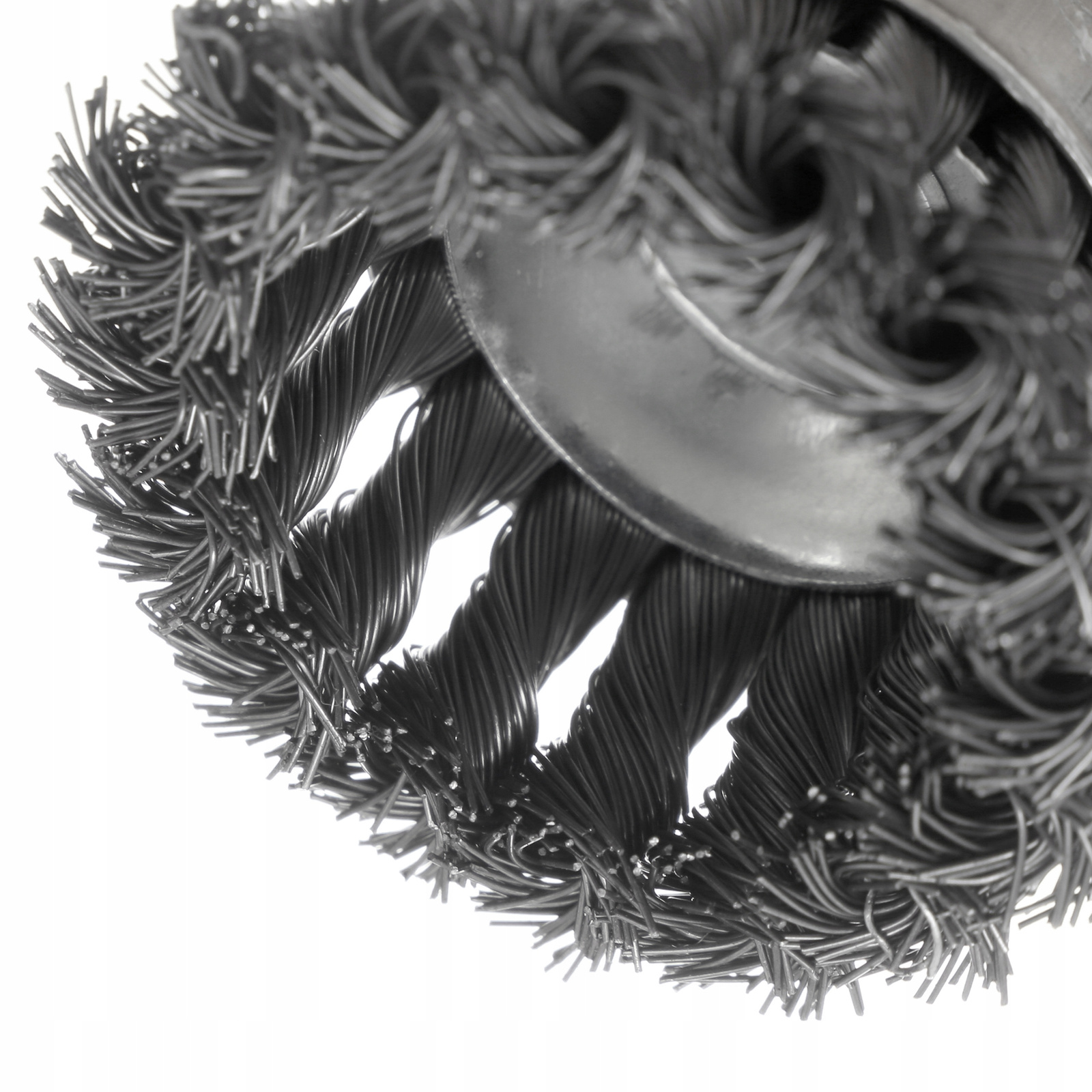 SZCZOTKA CZOŁOWA DRUT STALOWY SKRĘCANY 65mm Z TRZPIENIEM M6 NA WIERTARKĘ