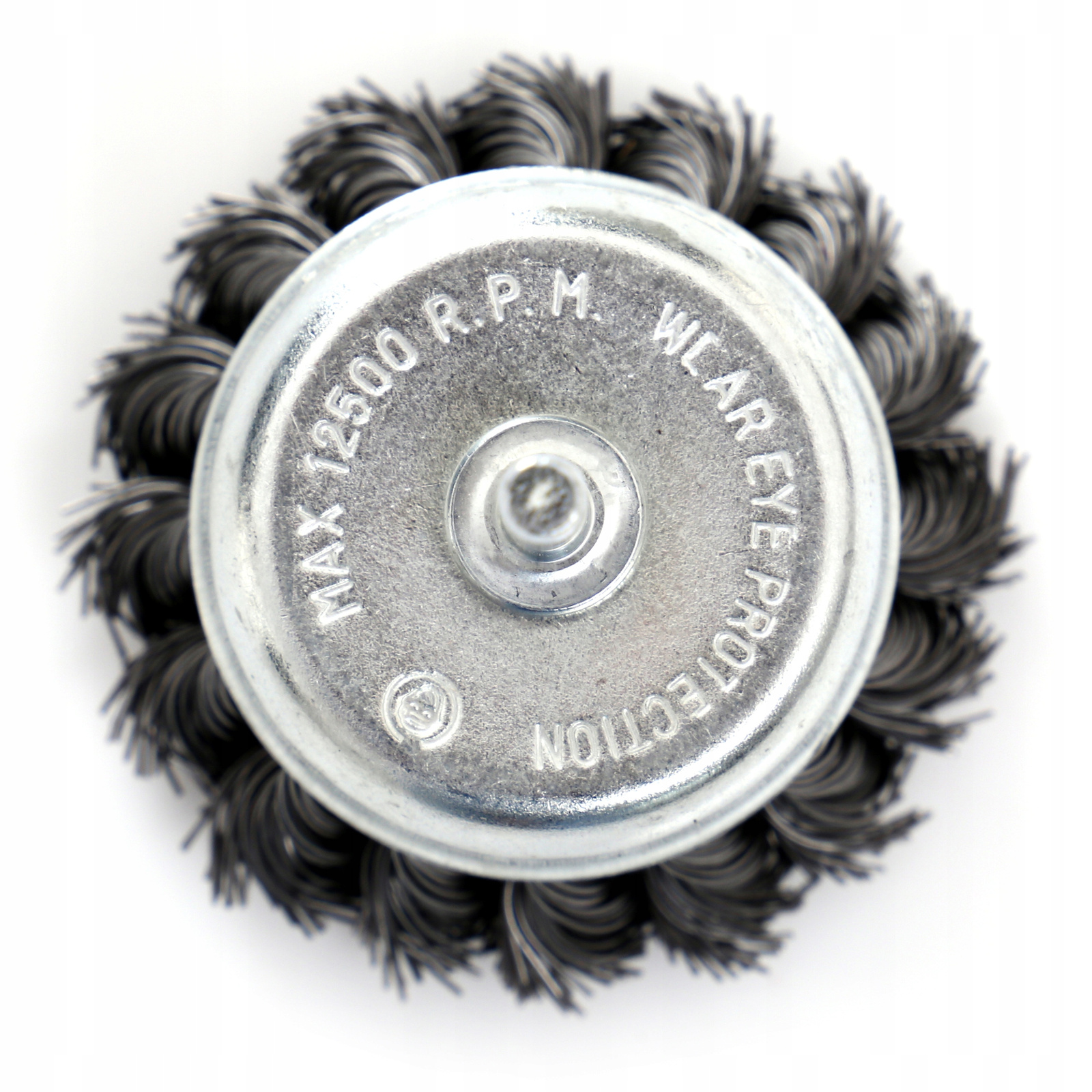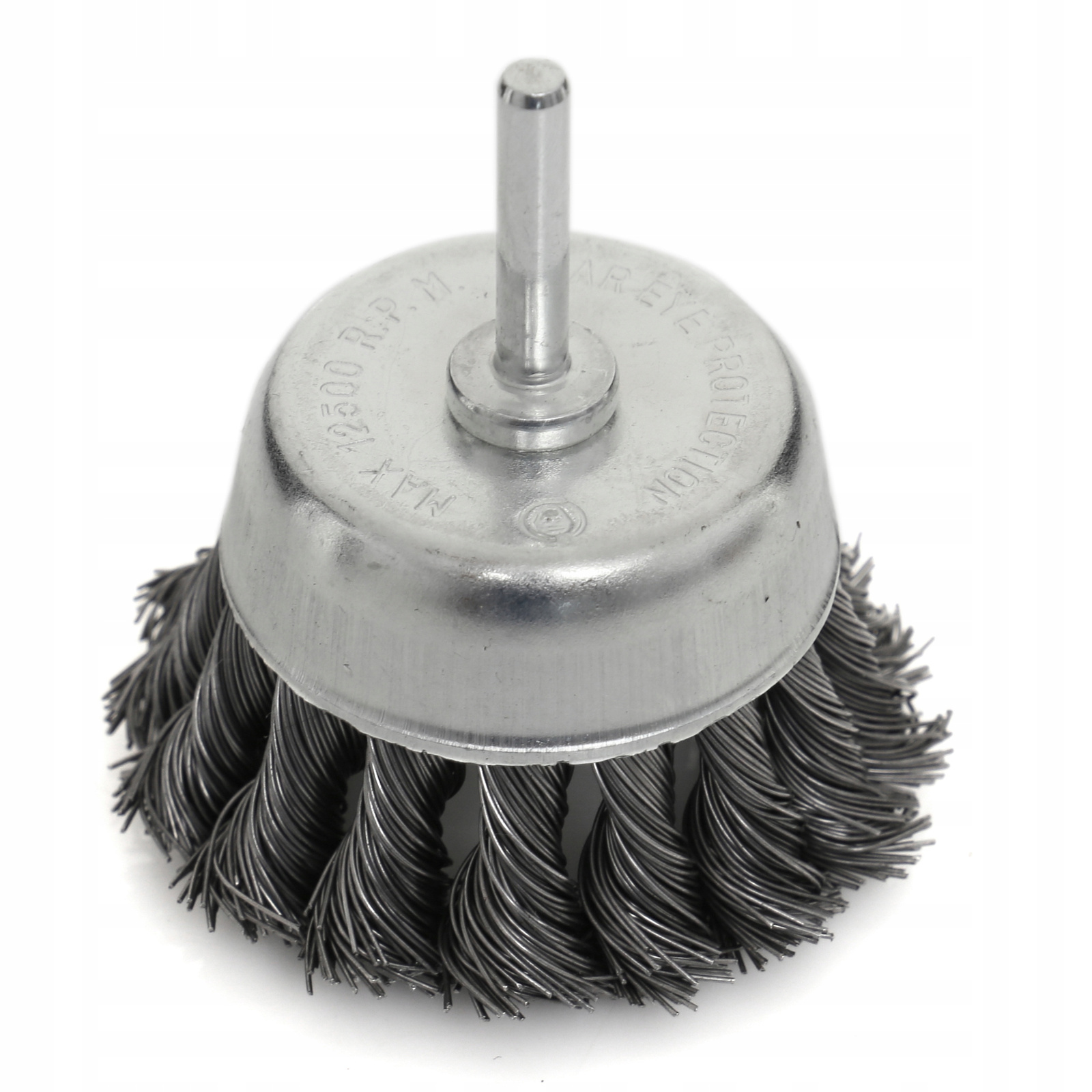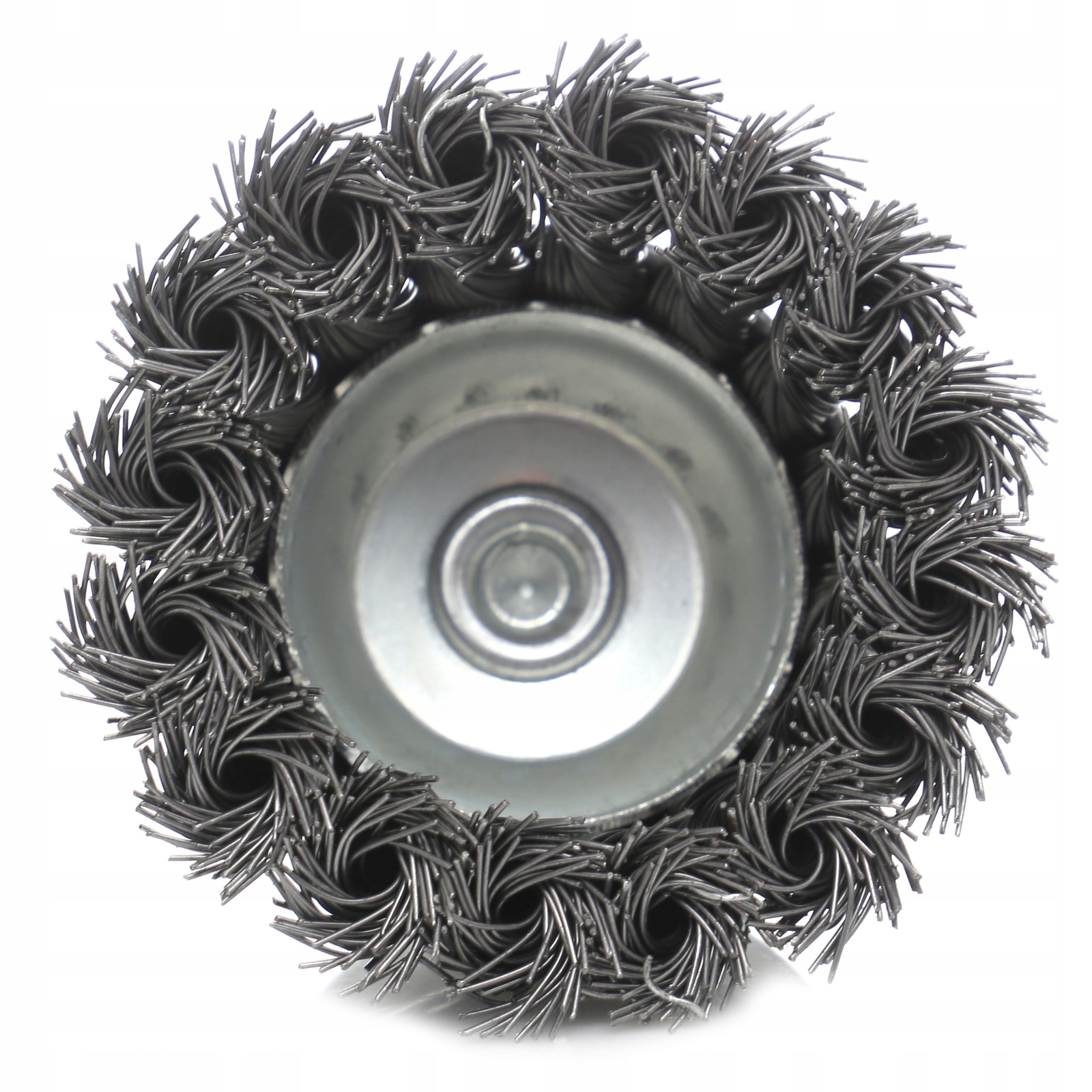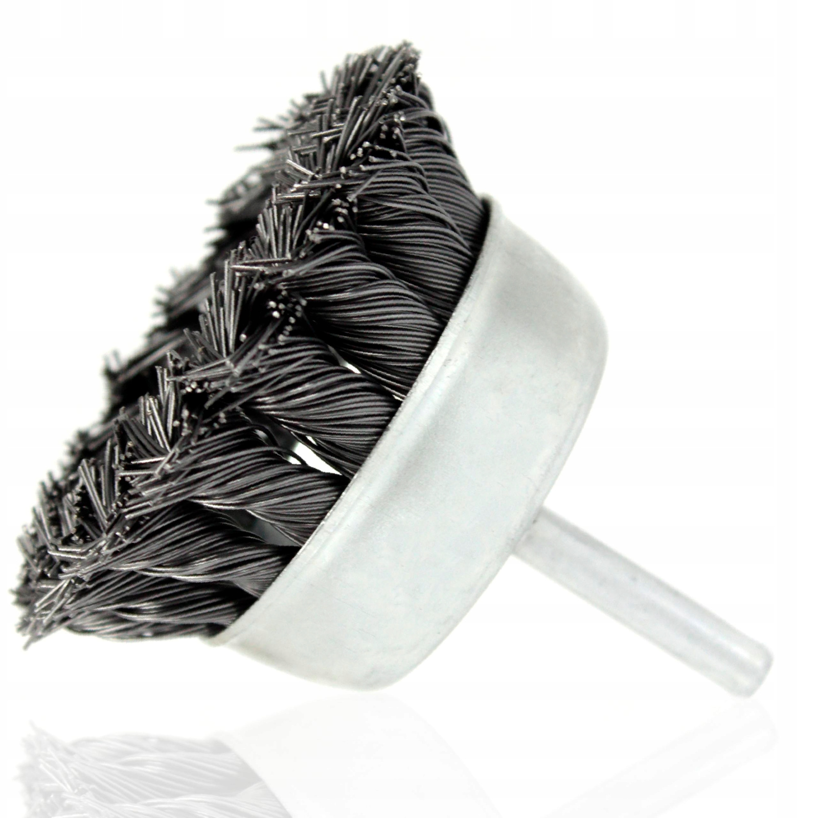 SZCZOTKA CZOŁOWA DRUT STALOWY SKRĘCANY 75mm Z TRZPIENIEM M6 NA WIERTARKĘ