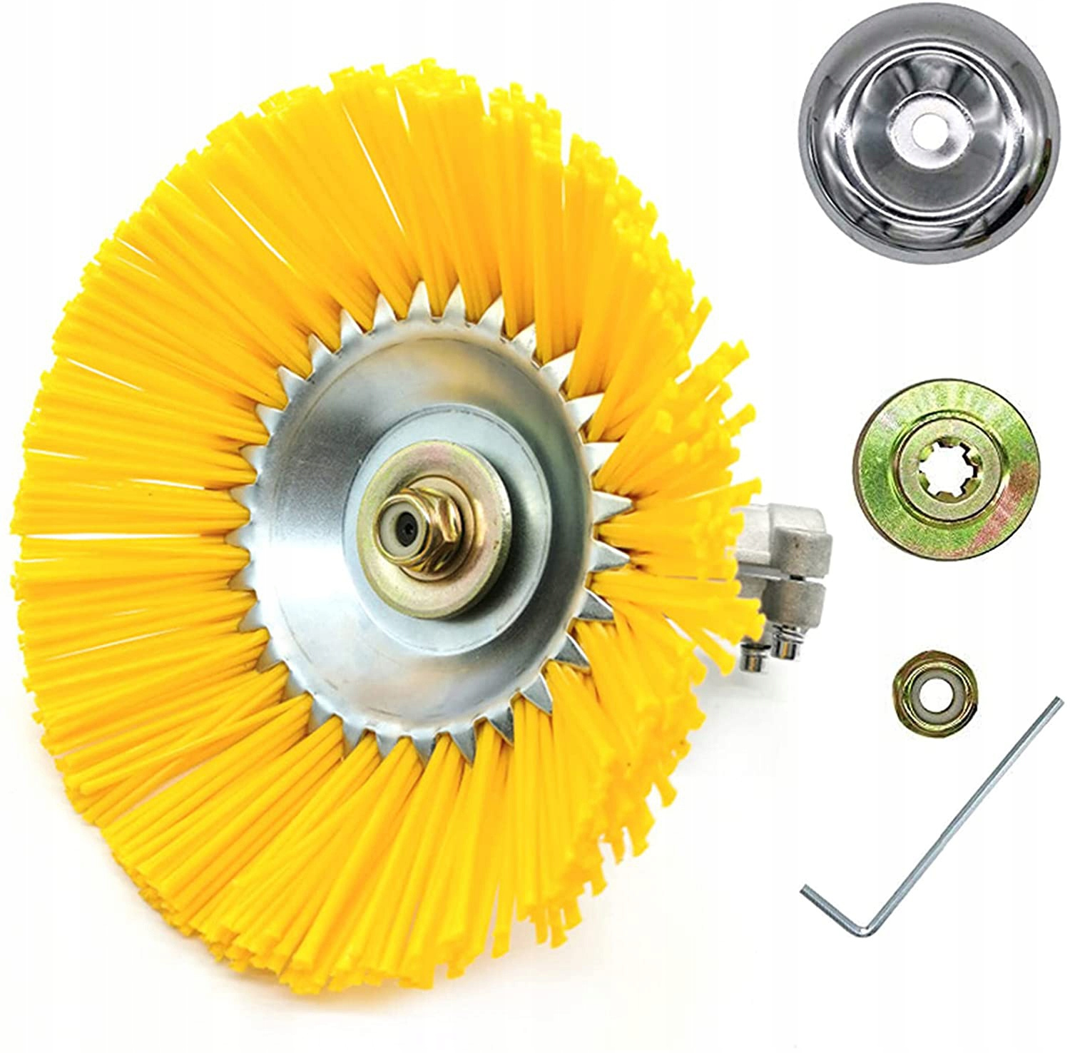 - Szczotkę mocuje się tak samo jak np. ostrze trójzębne tzn. do przykręcenia potrzebna jest nakrętka (którą można dokupić na naszych aukcjach)