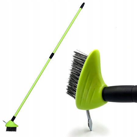 Szczotka wyposażona jest w metalowe włosie, którym oczyścisz kostkę z piasku i mułu oraz solidną, ostrą końcówkę, za pomocą której wyskrobiesz mech i trawę z chodnika.