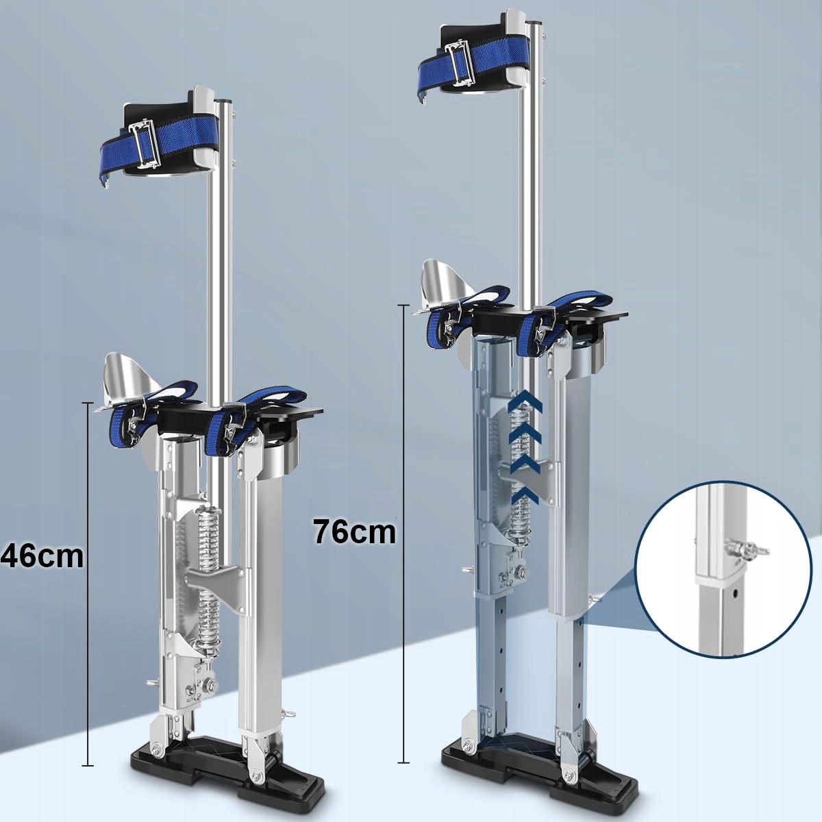 Profesjonalne szczudła wykonane z lekkiego i wytrzymałego aluminium – idealne do prac wykończeniowych, montażowych, instalacyjnych i dekoratorskich. Dzięki regulowanej wysokości od 46 do 76 cm oraz solidnej konstrukcji są niezastąpionym narzędziem na każdej budowie i przy pracach remontowych.