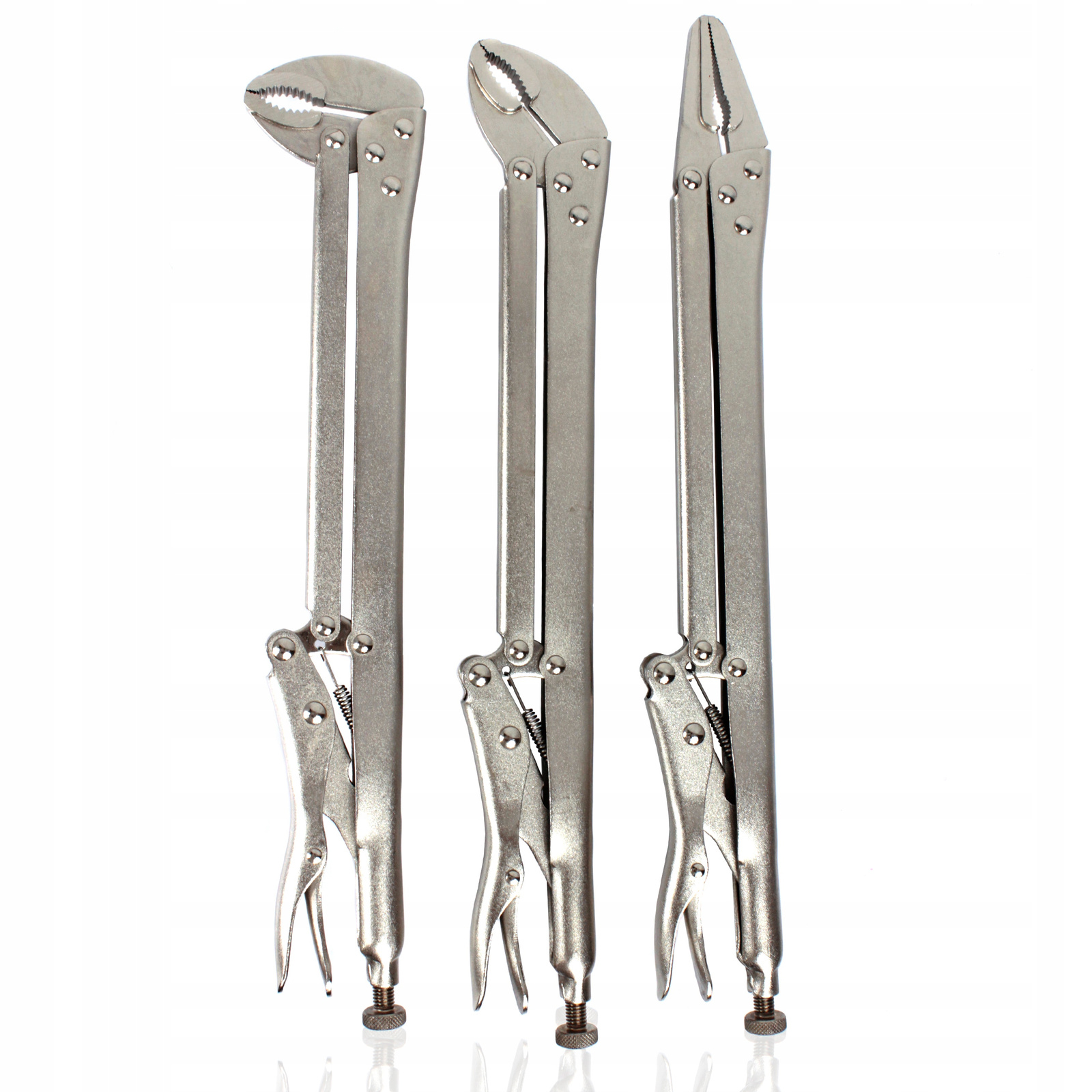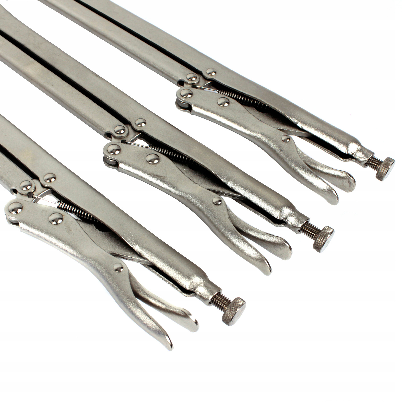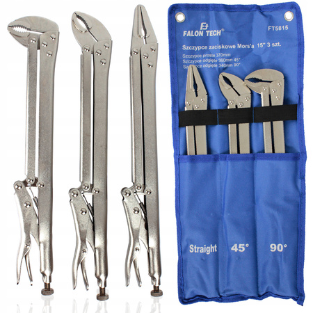 Zestaw specjalistycznych szczypiec zaciskowych Morse'a dedykowanych do użytku w miejscach trudno dostępnych do ściskania blach oraz innych materiałów.