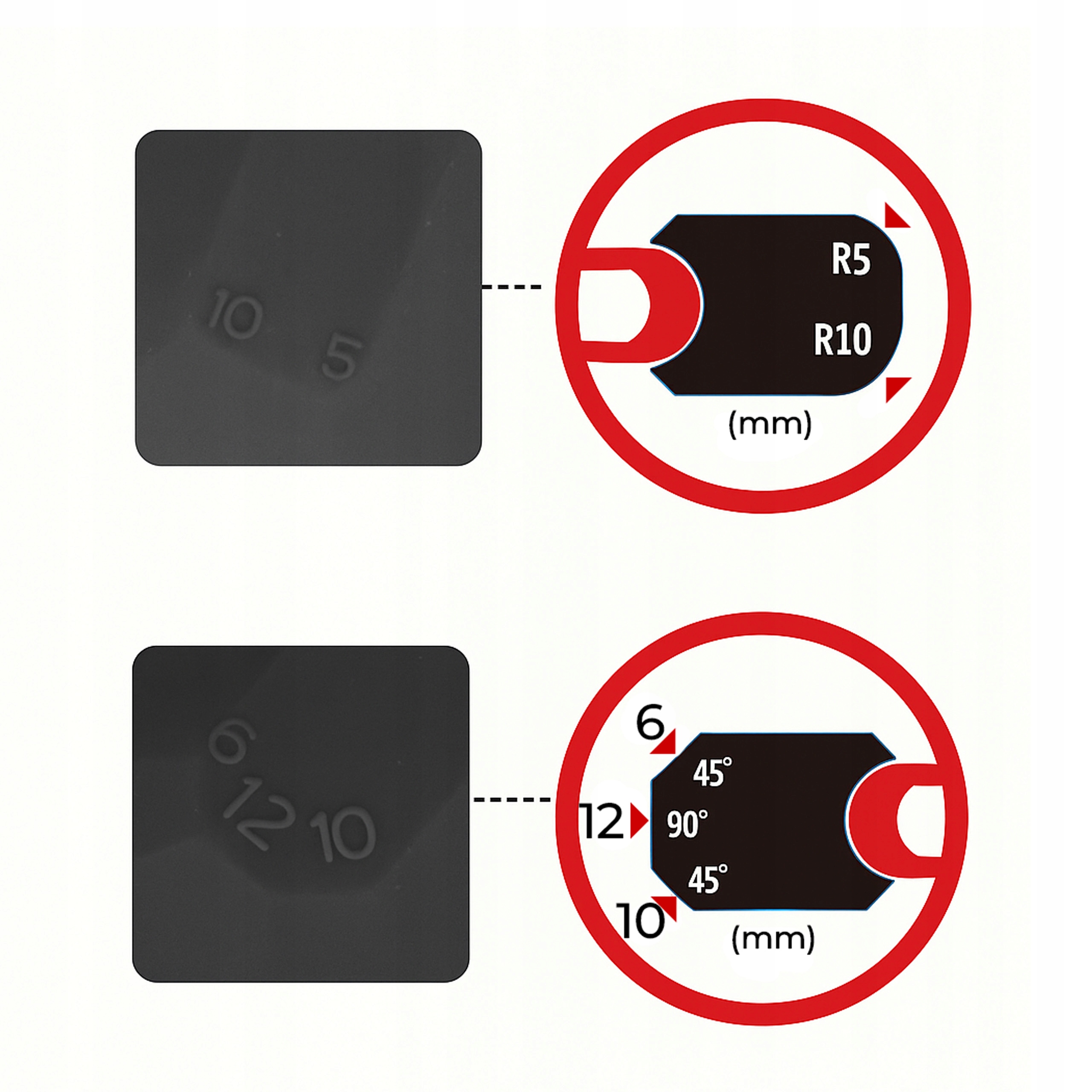 - Promień okrągły: 5 mm / 10 mm