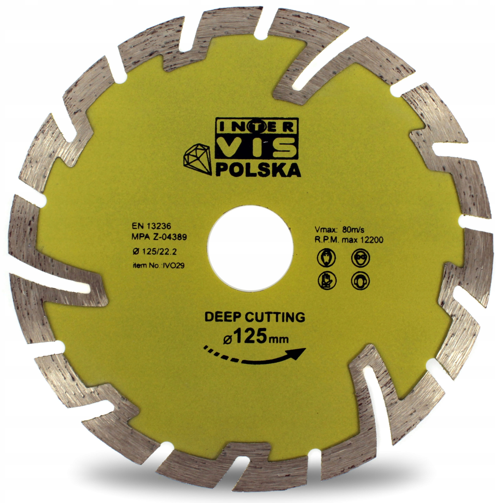 Tarcza diamentowa Inter-Vis fi 125 mm do granitu i materiałów twardych. Profesjonalna tarcza diamentowa do cięcia spawana laserowo. Przeznaczona do pracy w szlifierkach kątowych na sucho.