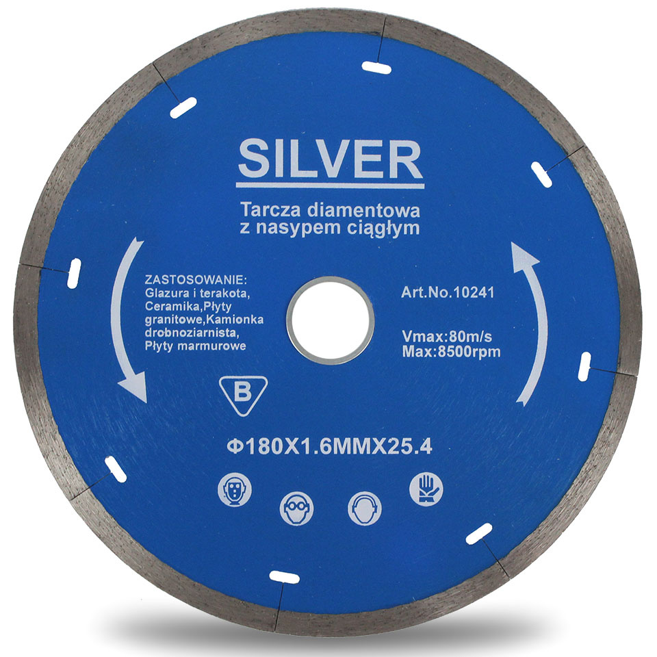 Tarcza diamentowa przeznaczona do cięcia ceramiki, betonu, gresu, kamienia, marmuru, klinkieru, cegły, piaskowca.
