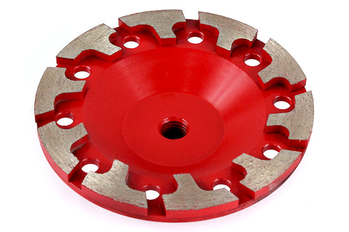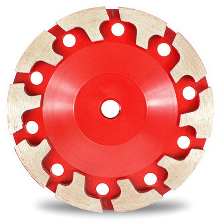 Diamentowa tarcza garnkowa jest przeznaczona do szlifowania powierzchni betonu przy użyciu szlifierki kątowej. Długą żywotność diamentowej tarczy garnkowej zapewniają doskonałe parametry techniczne. Nowoczesne procedury obróbki cieplnej i specjalne wykończenie powierzchni zmniejszają zużycie tarczy oraz poprawiają wytrzymałość. Dziesięć segmentów T-kształtnych o wysokości 5 mm pozwala na długie użytkowanie tarczy bez konieczności wymiany na nową. Tarcza idealnie nadaje się do usuwania nierówności, formowania oraz szlifowania dużych powierzchni betonu.