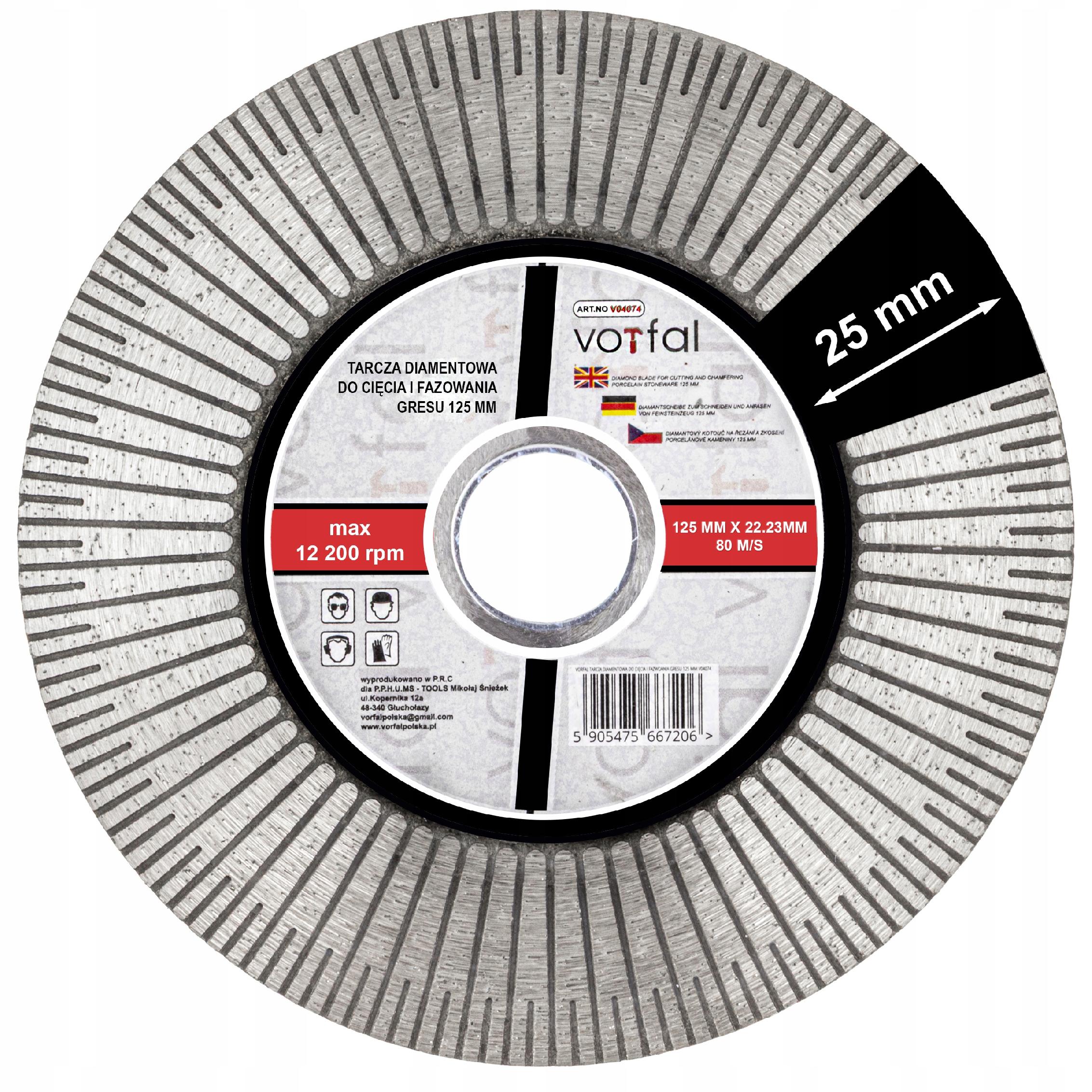 Vorfal V04074 125 mm to narzędzie stworzone z myślą o profesjonalistach i wymagających majsterkowiczach. Świetnie sprawdza się do gresu, ceramiki, kamienia naturalnego, cegły i dachówki, gwarantując czyste i równe cięcia oraz możliwość szlifowania krawędzi.