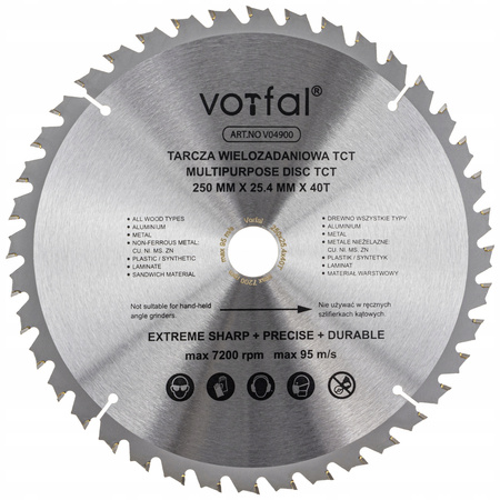TARCZA TNĄCA PIŁA WIELOZADANIOWA TCT 250X25,4X40T DO DREWNA METALU