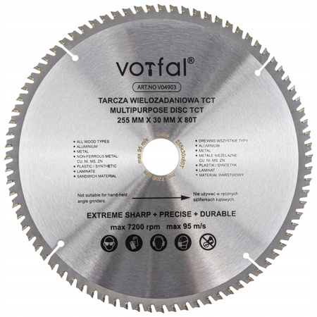 TARCZA TNĄCA PIŁA WIELOZADANIOWA TCT 255X30X80T DO DREWNA METALU