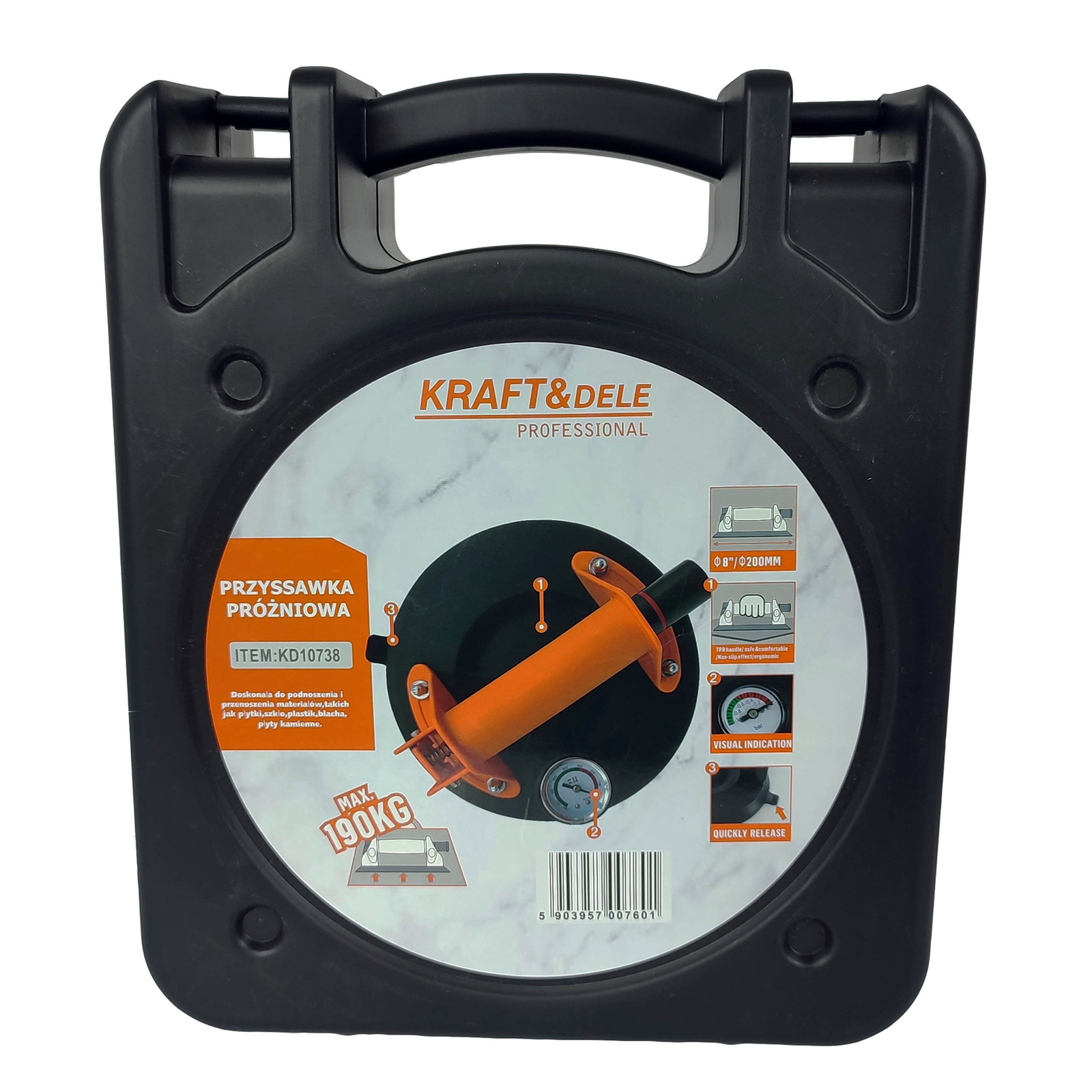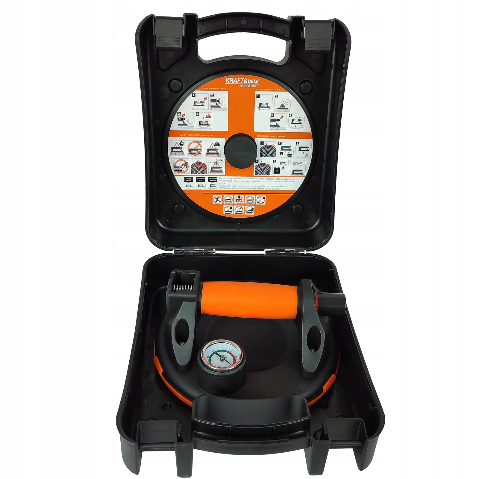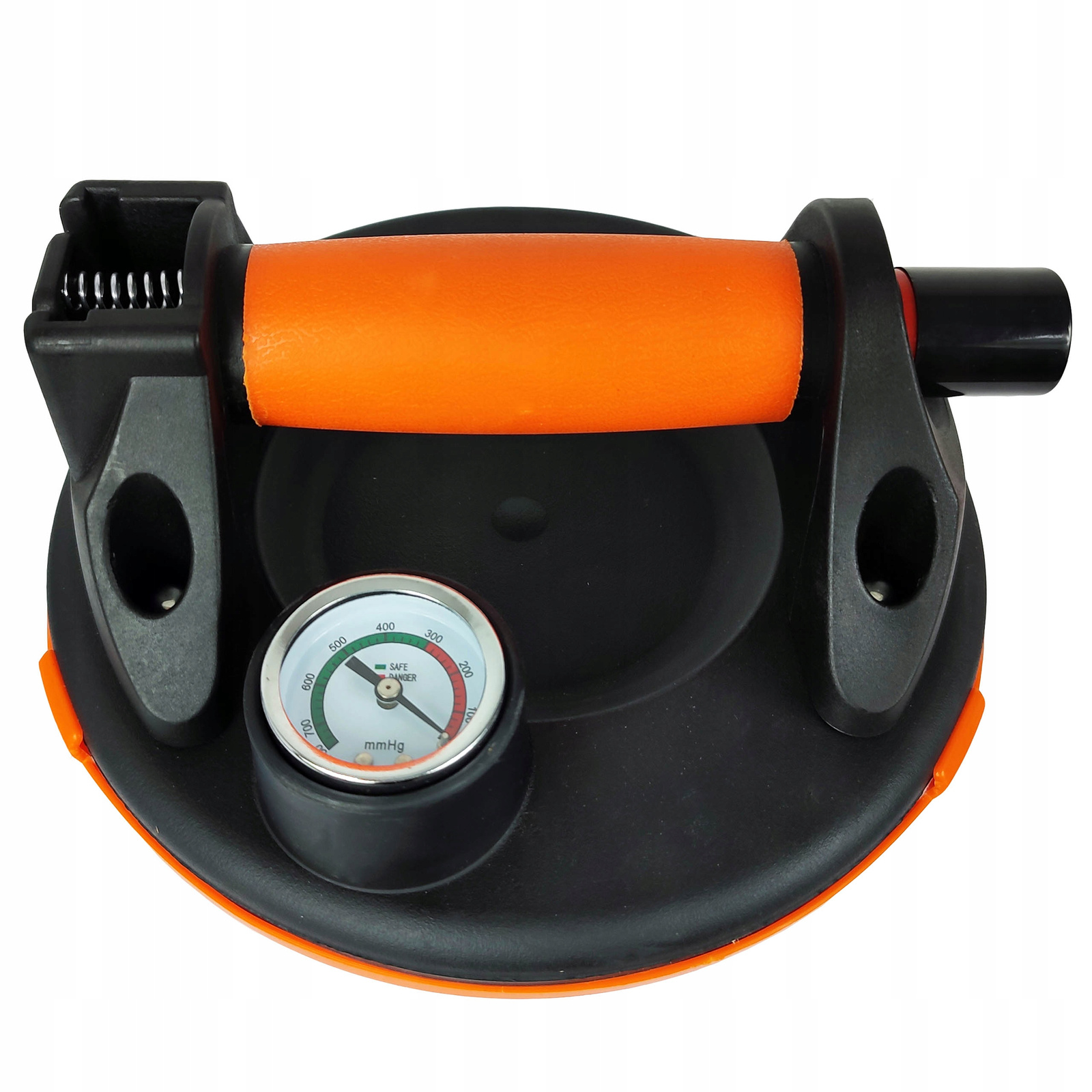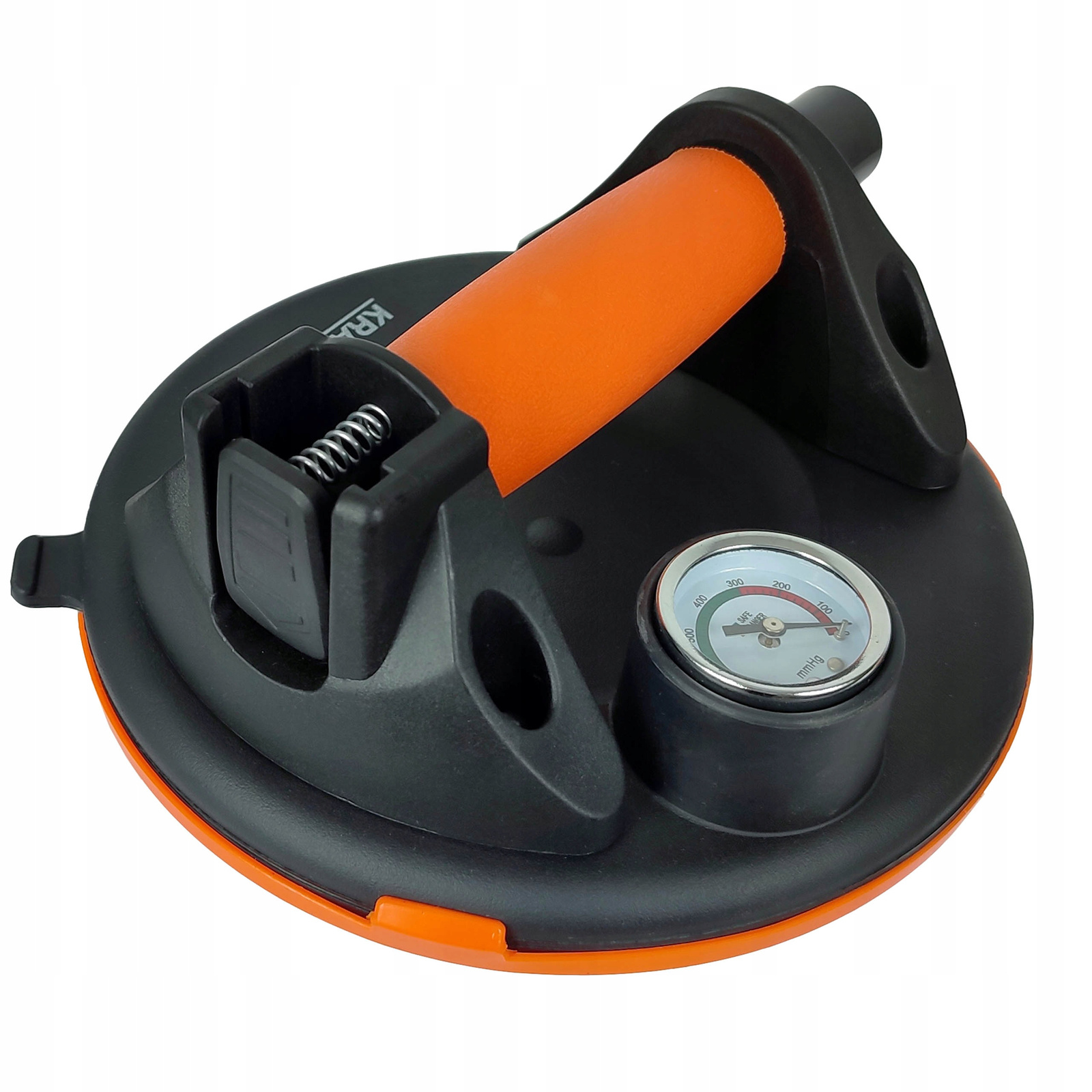 Uchwyt zintegrowany jest z manometrem analogowym pozwalającym odczytywać i kontrolować ciśnienie panujące między gumą przyssawki, a przenoszonym elementem.
