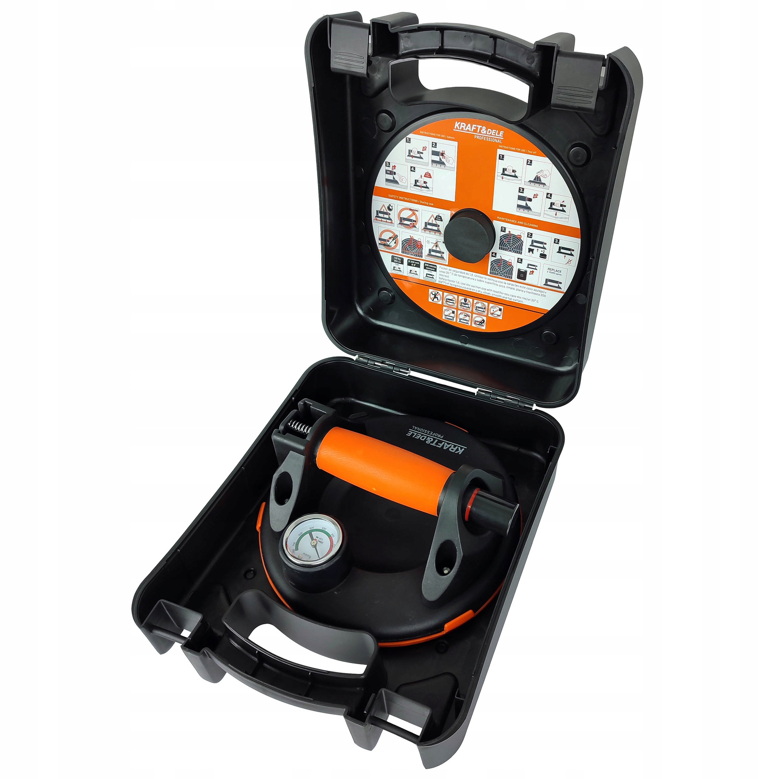 ➠ W przyssawce zastosowano gumę o średnicy roboczej aż 20 cm. Dodatkowo wyposażono ją w filtr chroniący cylinder przed zabrudzeniami i rozszczelnieniem. Ponadto każdy uchwyt posiada osłonę z tworzywa sztucznego i bardzo solidną skrzynkę transportową.