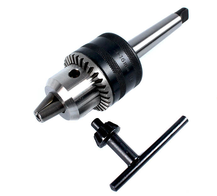 - Uchwyt wiertarski (głowica do wiertarki) na kluczyk w całości wykonany z wysokogatunkowej stali, posiada rozstaw szczęk od 3 mm do 16mm.