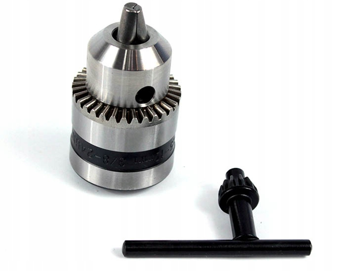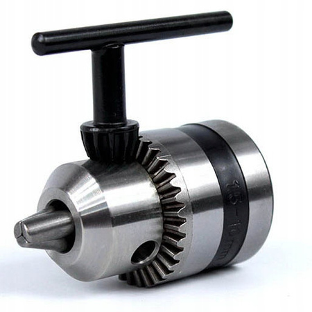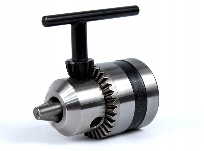 - Uchwyt wiertarski (głowica do wiertarki) na kluczyk w całości wykonany z wysokogatunkowej stali, posiada rozstaw szczęk od 1.5 mm do 10mm.