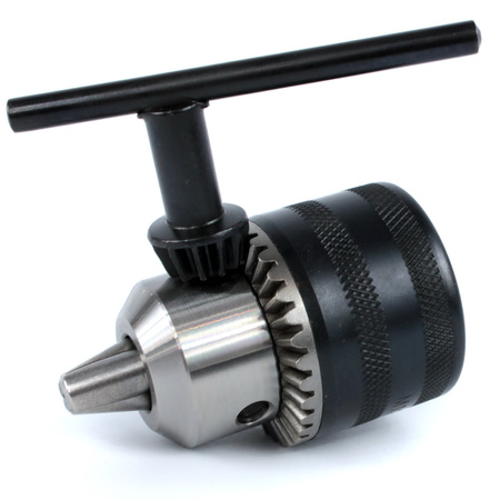 - Uchwyt wiertarski (głowica do wiertarki) na kluczyk w całości wykonany z wysokogatunkowej stali, posiada rozstaw szczęk od 3 mm do 16mm.