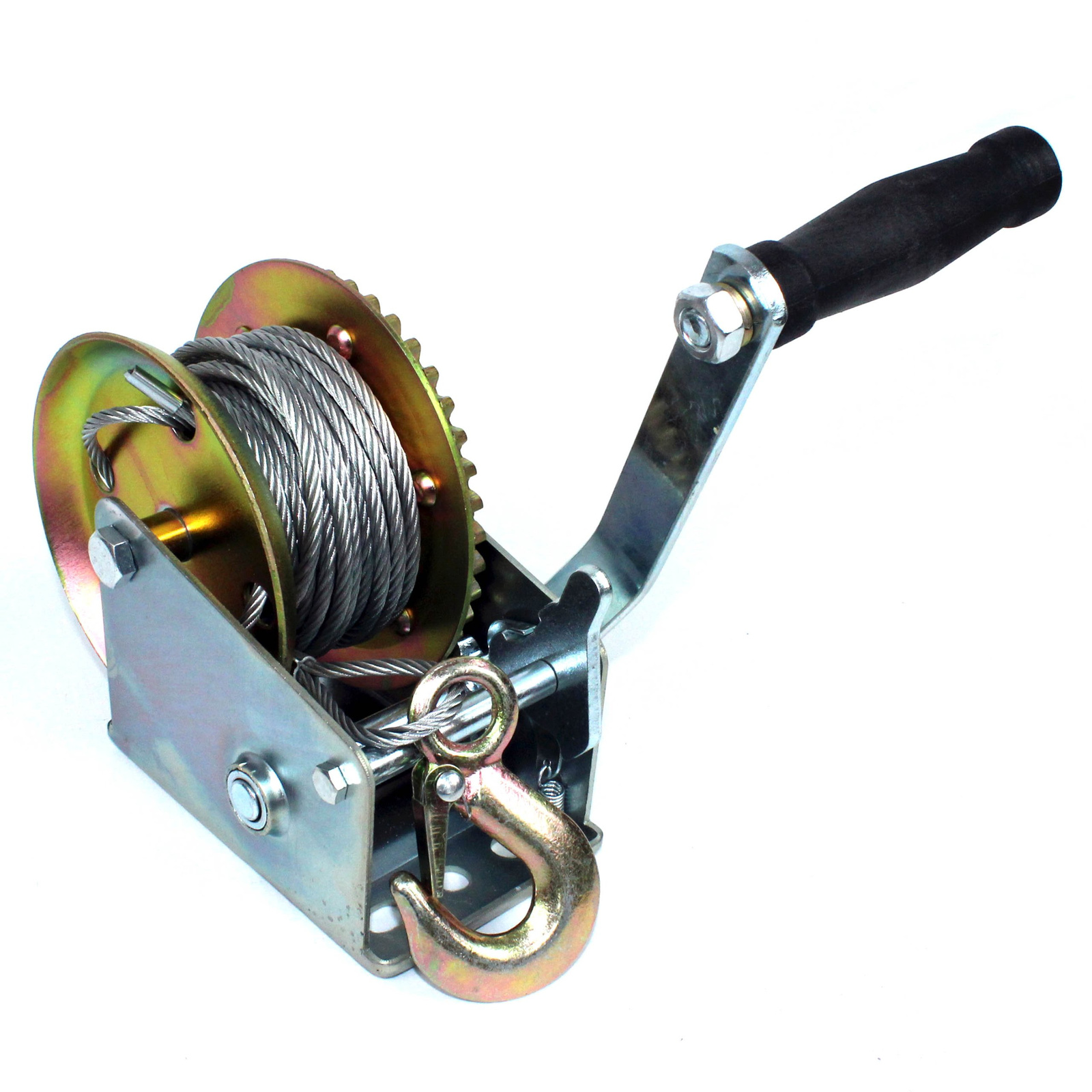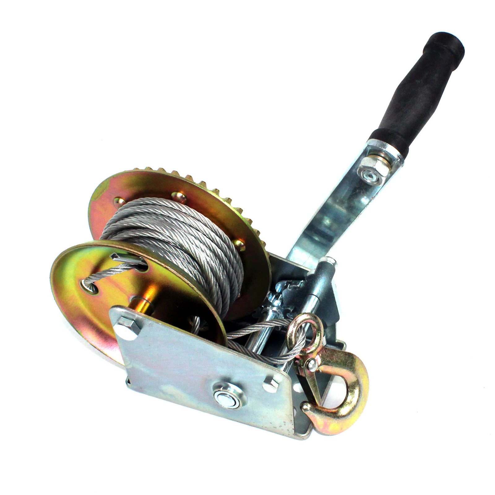Wyciągarka została wykonana z wysokiej jakości materiałów o odpowiedniej trwałości - stal konstrukcyjna oraz odlewany hak ze sprężyną zwrotną. Jest odporna na warunki atmosferyczne. Do sterowania urządzeniem służy ręczna korba razem z mechanizmem zapadkowym, te właściwości umożliwiają bezpieczne wciąganie i opuszczanie przedmiotów. Może służyć między innymi do naciągania siatki ogrodzeniowej, wiązania, mocowania i przeciągania ciężkich i dużych przedmiotów np. łodzi quadów itp na przyczepy i lawety .
